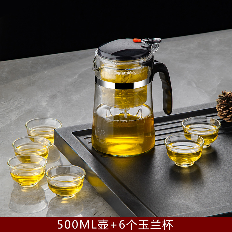 Главная страница > Элегантный стеклянный чайник для чашек, устойчивый к высоким температурам, бытовой чайный набор, фильтр для чая, чайник с разделением воды, цветочный чайник