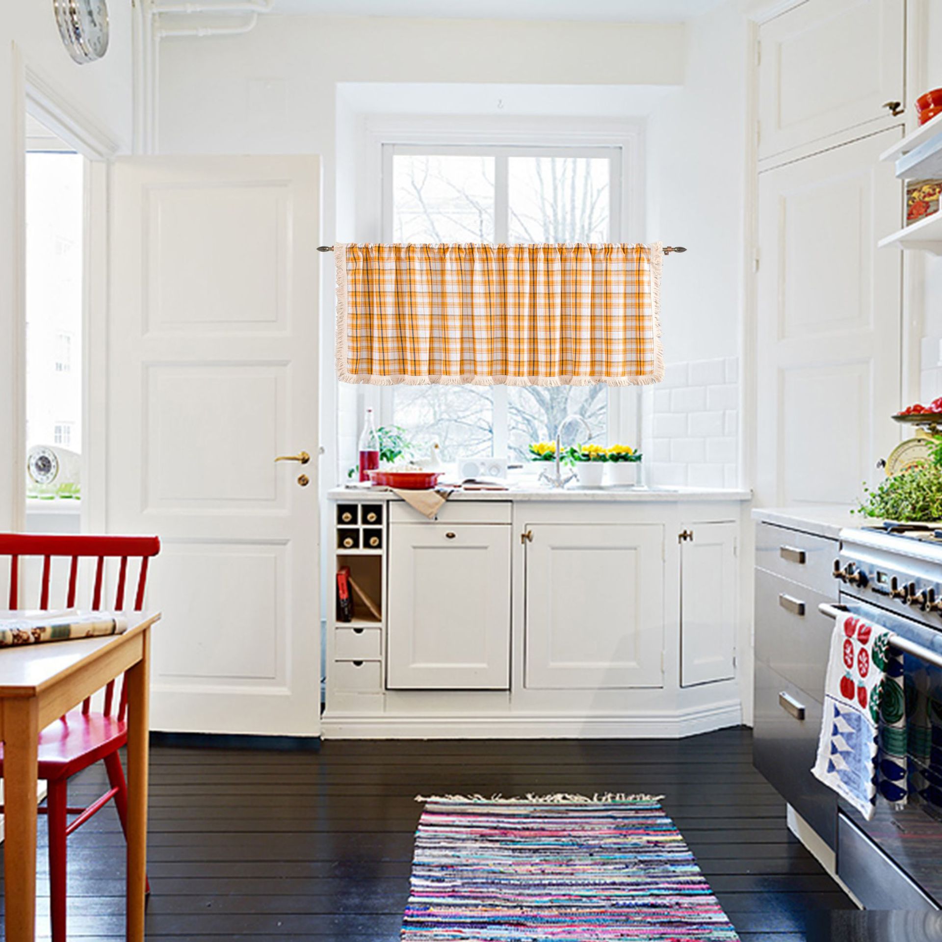 Главная страница > Yiman Qiyun оконная мантия клетчатая кисточка оранжевая половина занавески дверная занавеска кофейная занавеска кухонная раковина шкаф Пылезащитная занавеска