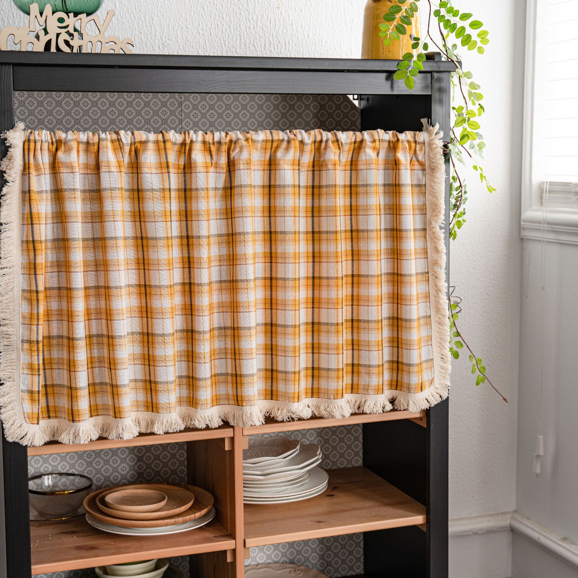 Yiman Qiyun оконная мантия клетчатая кисточка оранжевая половина занавески дверная занавеска кофейная занавеска кухонная раковина шкаф Пылезащитная занавеска