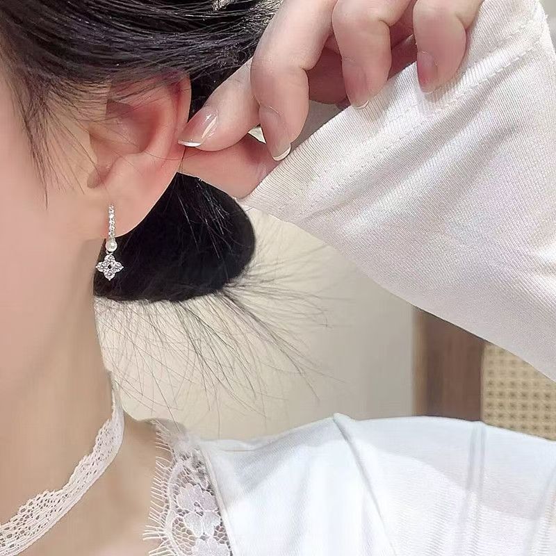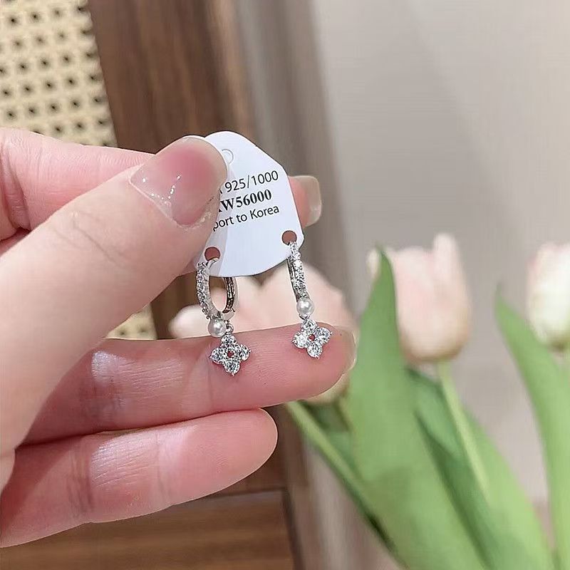 Серьги-иглы из серебра s925, серьги-иглы с супер-флэш-цирконом и цветочными бусинами, женские доступные роскошные высококачественные модные элегантные универсальные серьги