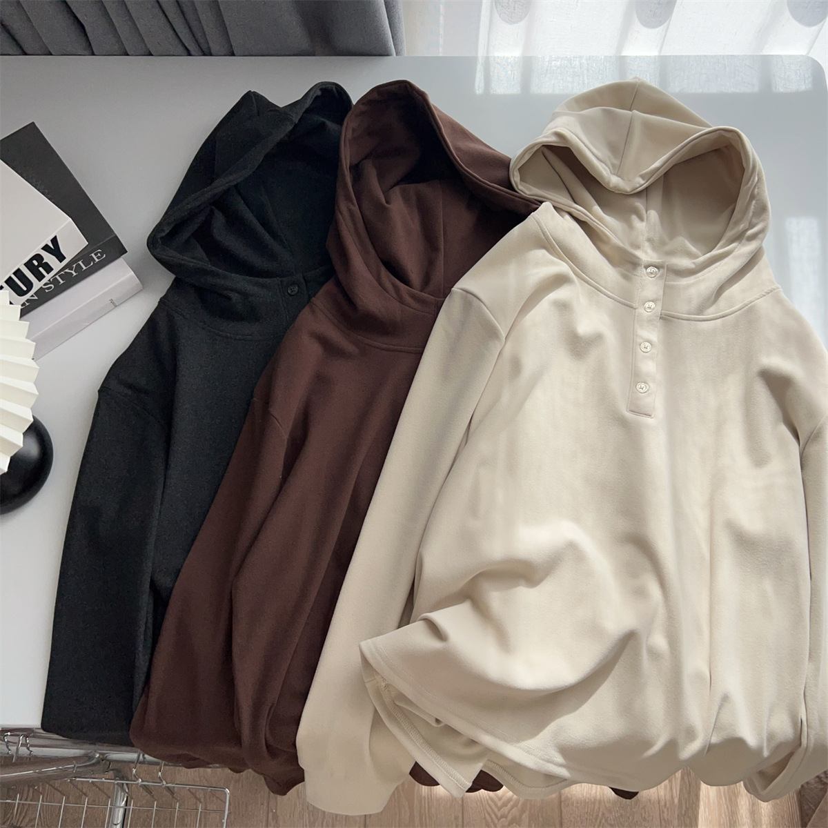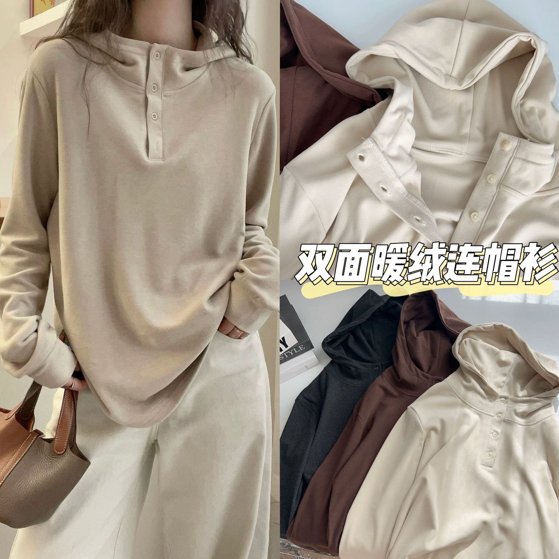 Главная страница > Двусторонний теплый бархат ~ Футболка с пуговицами свитер женская осень-зима