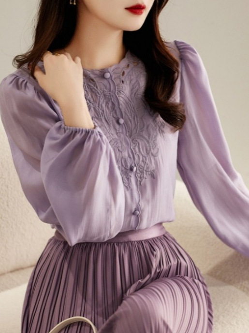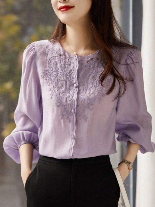 Главная страница > Французский элегантный стиль с вышивкой, элегантная рубашка с круглым вырезом и длинными рукавами, топ с рукавами-фонариками, солнцезащитная рубашка для женщин, весна и лето