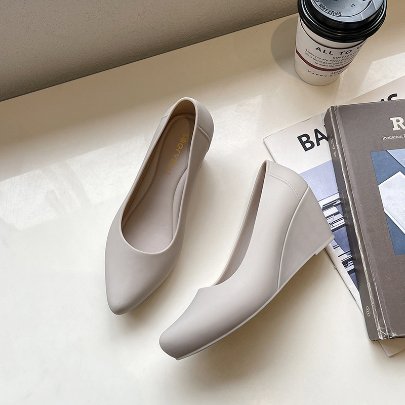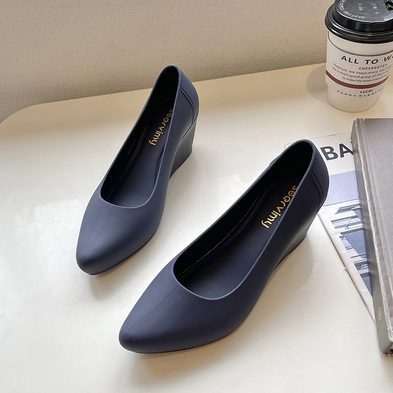 Главная страница > Модная непромокаемая обувь Baotou на танкетке, увеличивающая рост, резиновая Повседневная пляжная обувь с острым носком и мягким лицом, Женская непромокаемая обувь