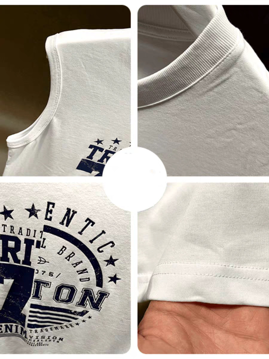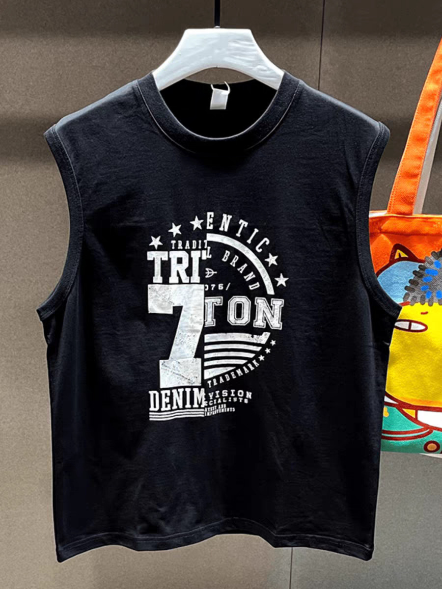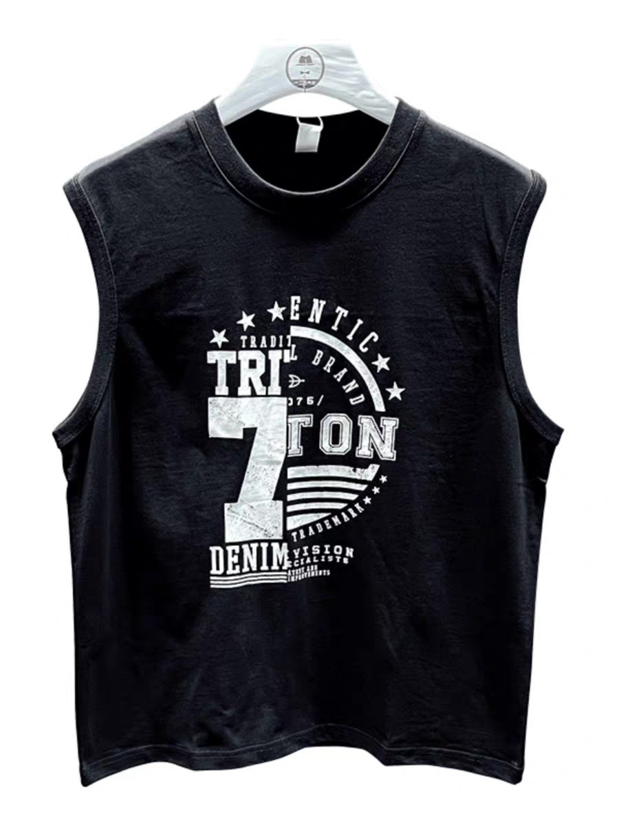 Главная страница > Мужская футболка без рукавов из чистого хлопка, мужская летняя свободная повседневная футболка с круглым вырезом, модный брендовый топ, майка