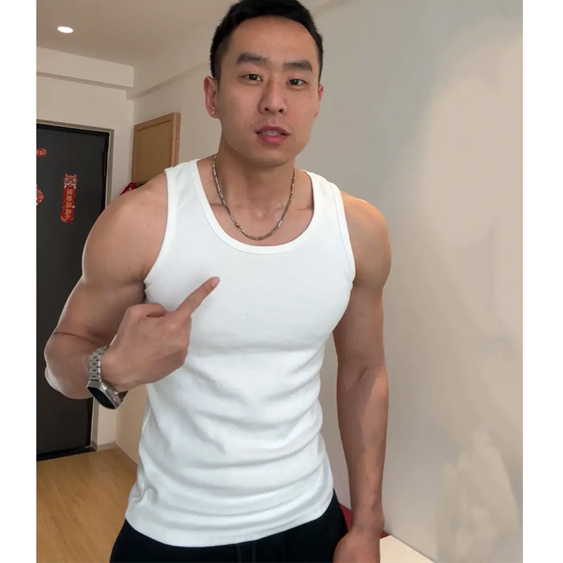 Летний спортивный жилет в американском стиле, хип-хоп, тяжелый вес, хлопок, плотный ребристый, плотный, для фитнеса, мужская футболка, модная.