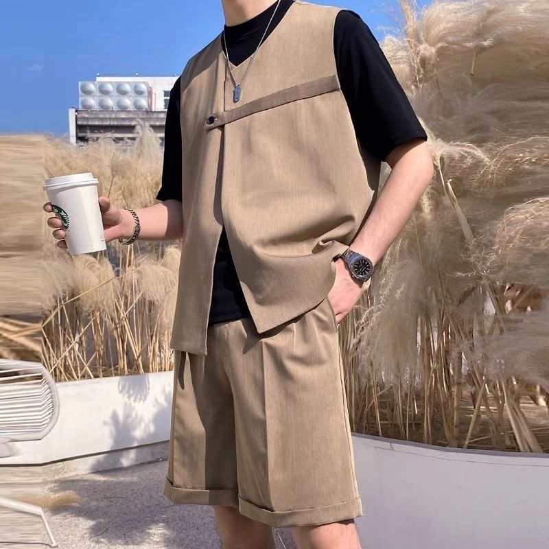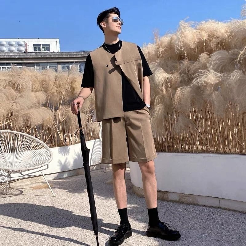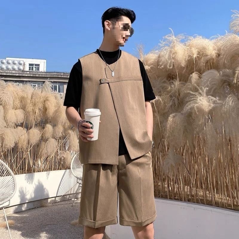 Главная страница > Летний дизайн, повседневный костюм, жилет, мужской костюм, корейский стиль, свободный жилет без рукавов, трендовая куртка