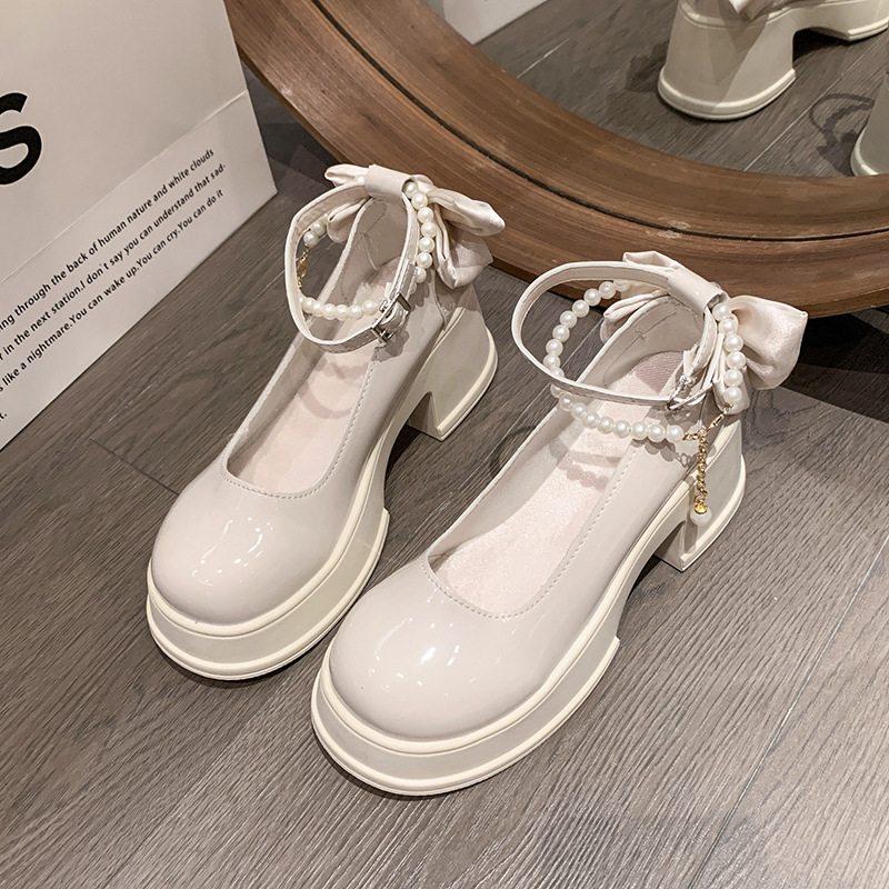 Главная страница > Туфли на высоком каблуке Mary Jane женские 2025 с толстой подошвой, белый бант, для юбки