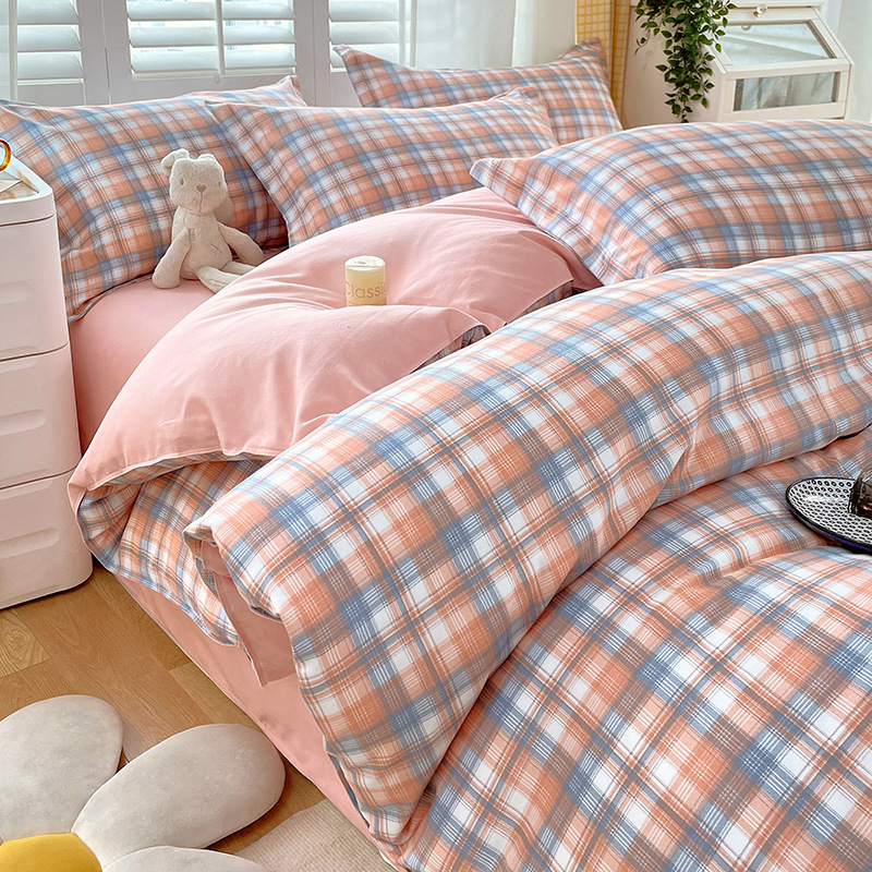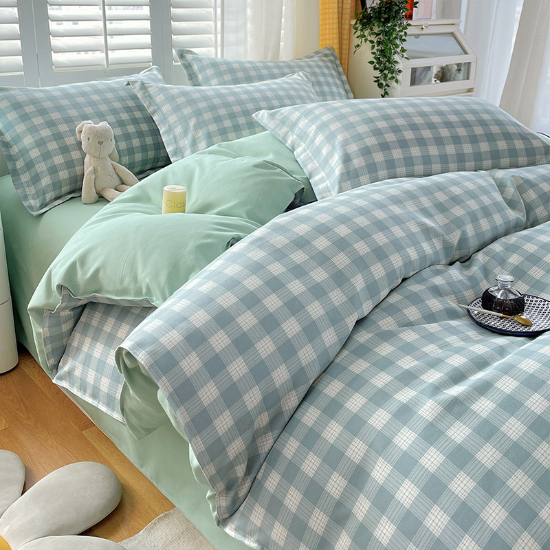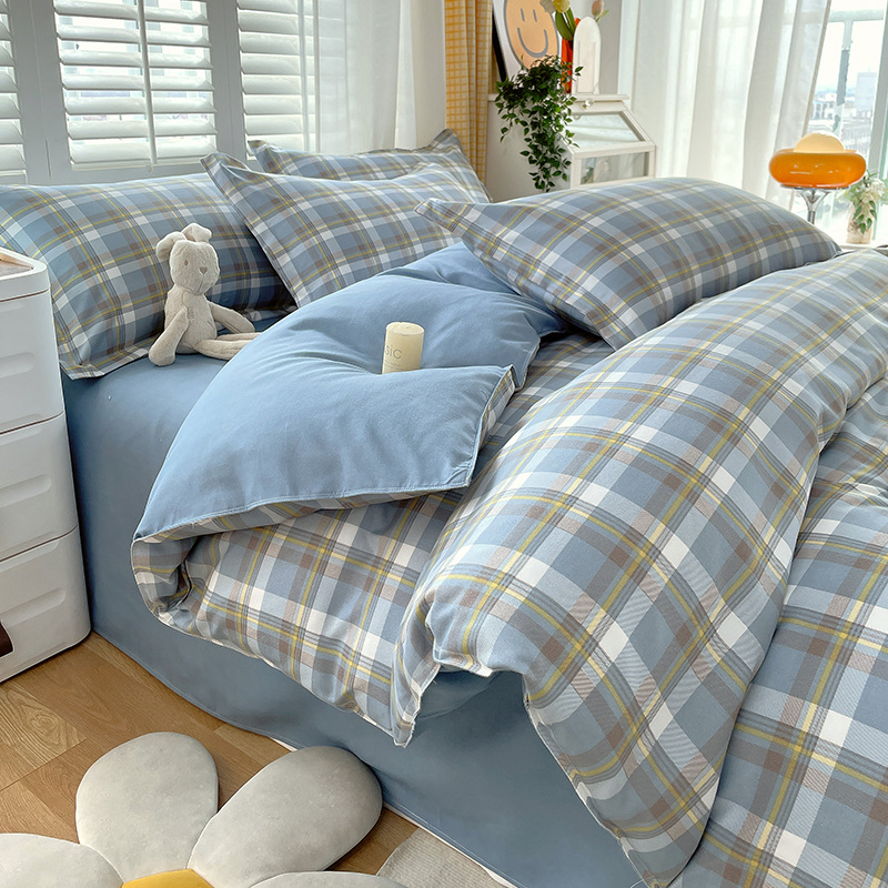Утолщенный шлифовальный набор из четырех частей Японский стиль простой водяной хлопчатобумажный наволочек для постельного белья