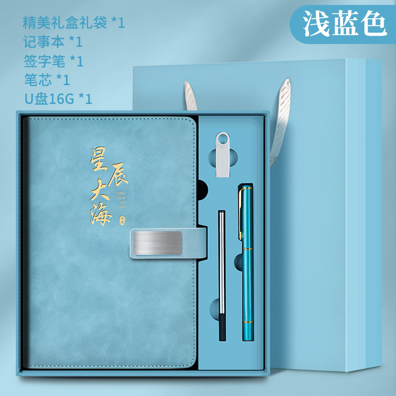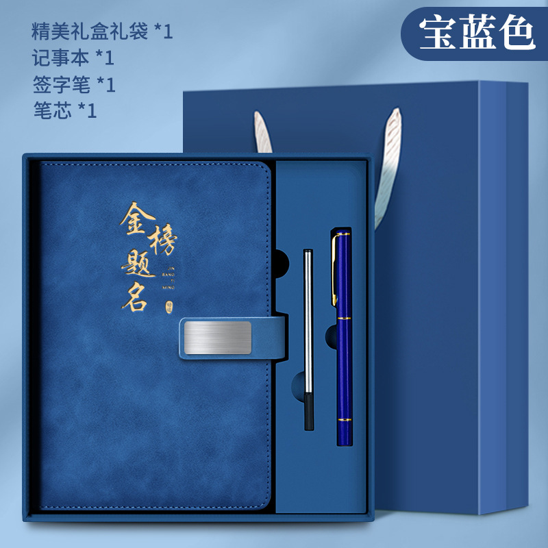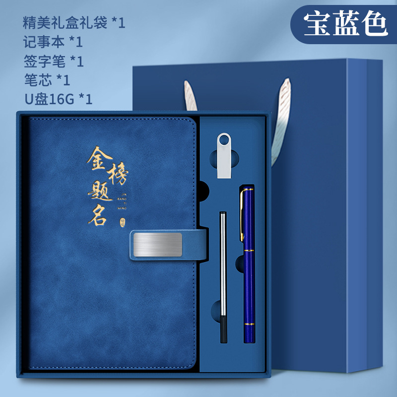 A5-Сапфировый синий USB-накопитель в подарочной упаковке-Золотой список-200 страниц