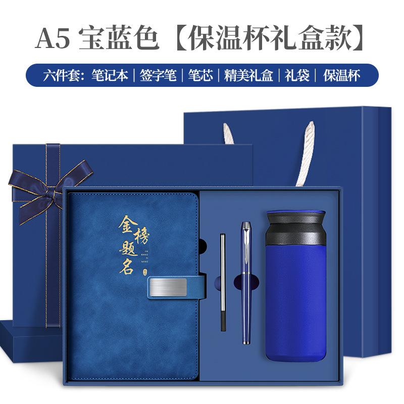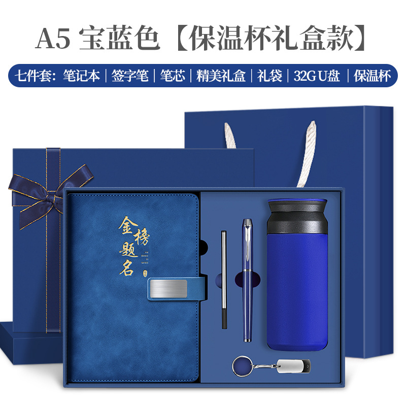 A5-Сапфировый синий [Название золотого списка]-Подарочный набор с пряжкой и чашкой-стаканом + U-диск, 200 страниц