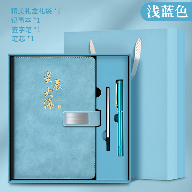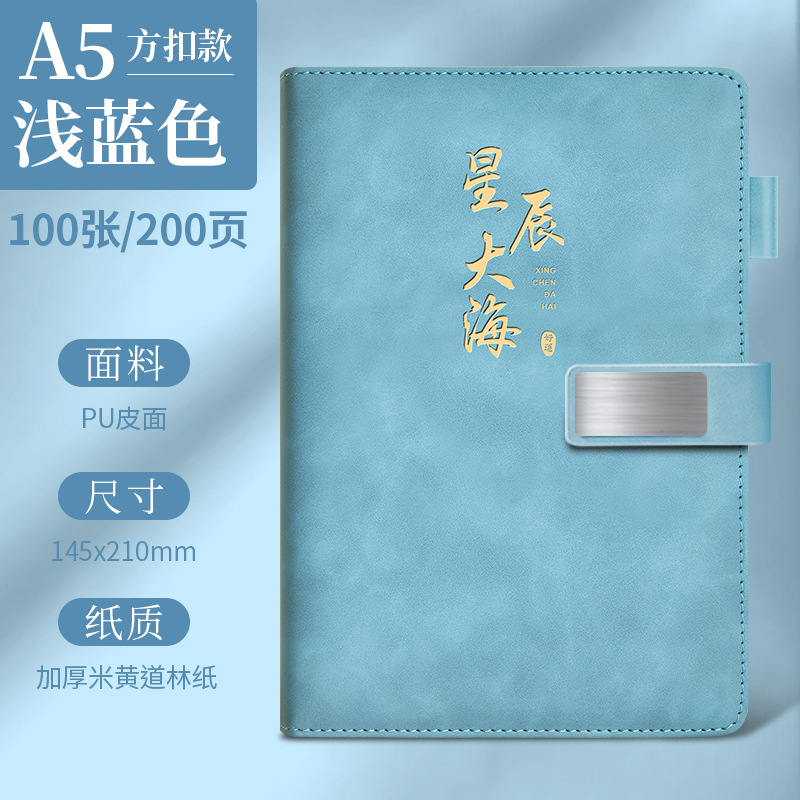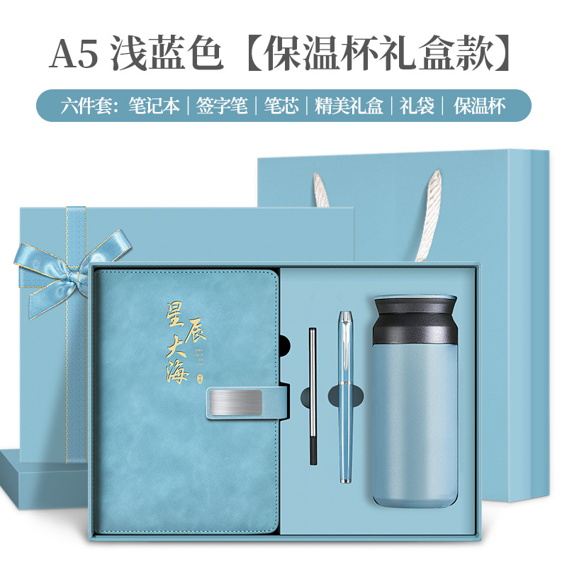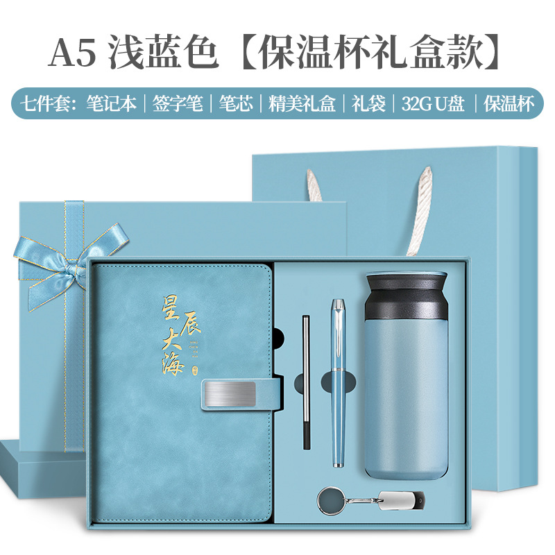 A5-Голубой [Море звезд]-Индивидуальная подарочная коробка с пряжкой и термочашкой + U-диск, 200 страниц