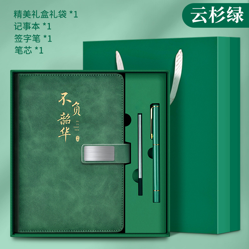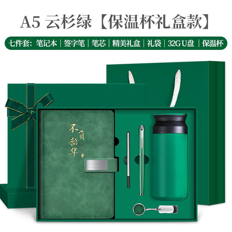 Зеленый цвет А5 [Живите в соответствии со временем] - Индивидуальная пряжка - Подарочный набор с термочашкой + U-диск, 200 страниц
