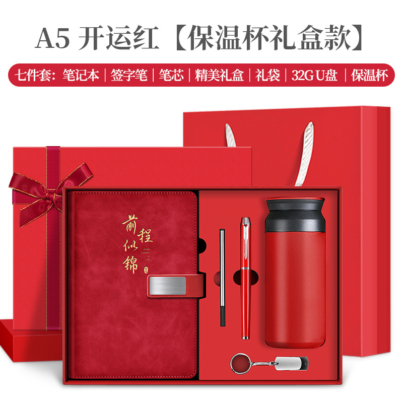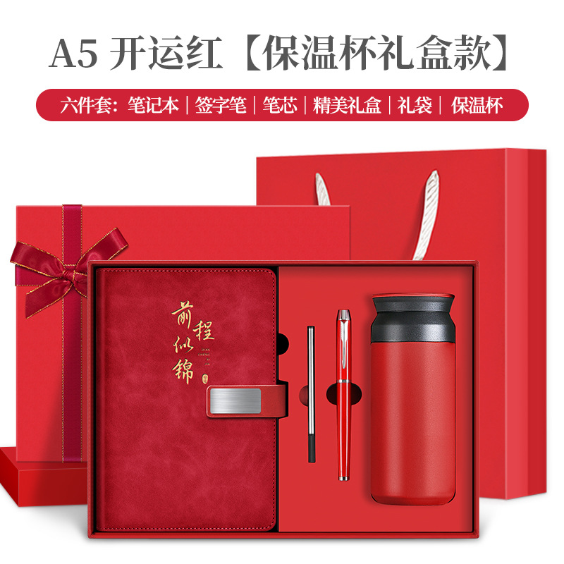A5-красный [яркое будущее]-индивидуальная подарочная коробка с пряжкой и термочашкой + U-диск, 200 страниц