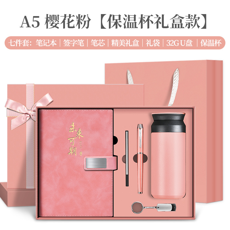 A5-Розовый [Будущее многообещающее]-Индивидуальная пряжка-Подарочный набор стаканов + U-диск 200 страниц