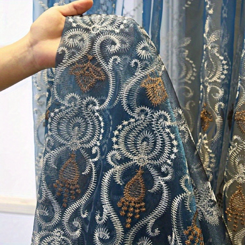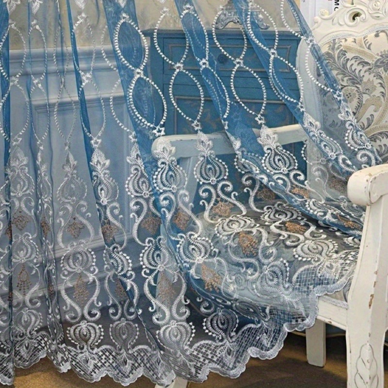 Главная страница > Готовые к отправке трансграничные роскошные шторы в скандинавском стиле с ажурным узором «восьмерка», дышащие, полупрозрачные, синие, AliExpress Temu
