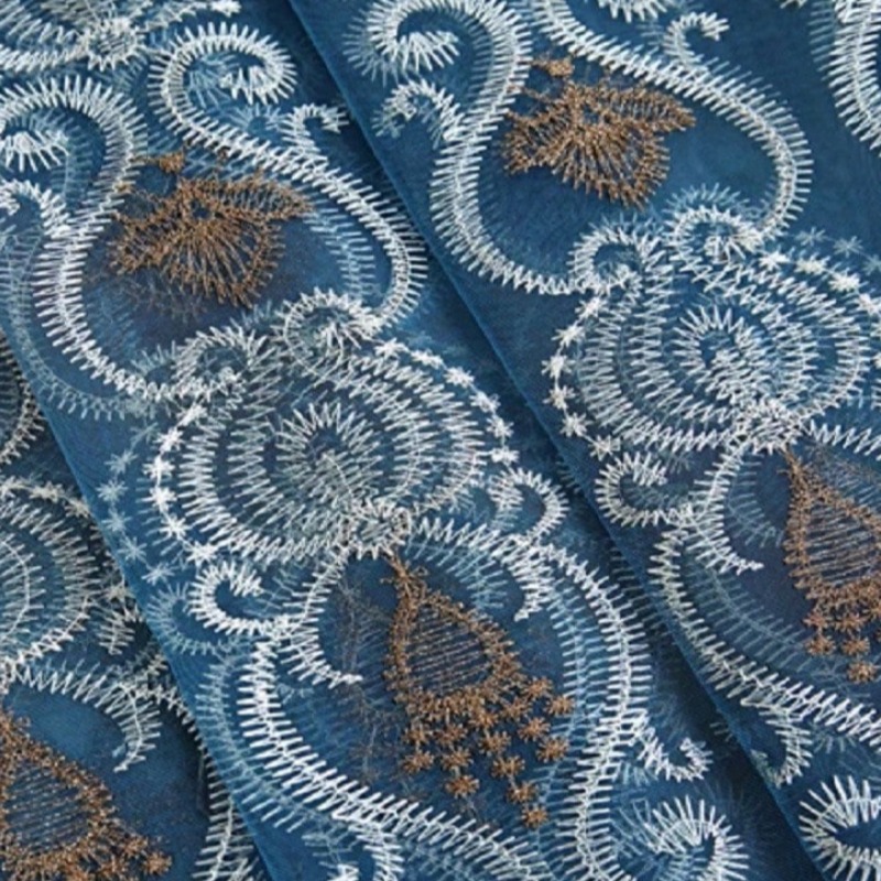 Готовые к отправке трансграничные роскошные шторы в скандинавском стиле с ажурным узором «восьмерка», дышащие, полупрозрачные, синие, AliExpress Temu