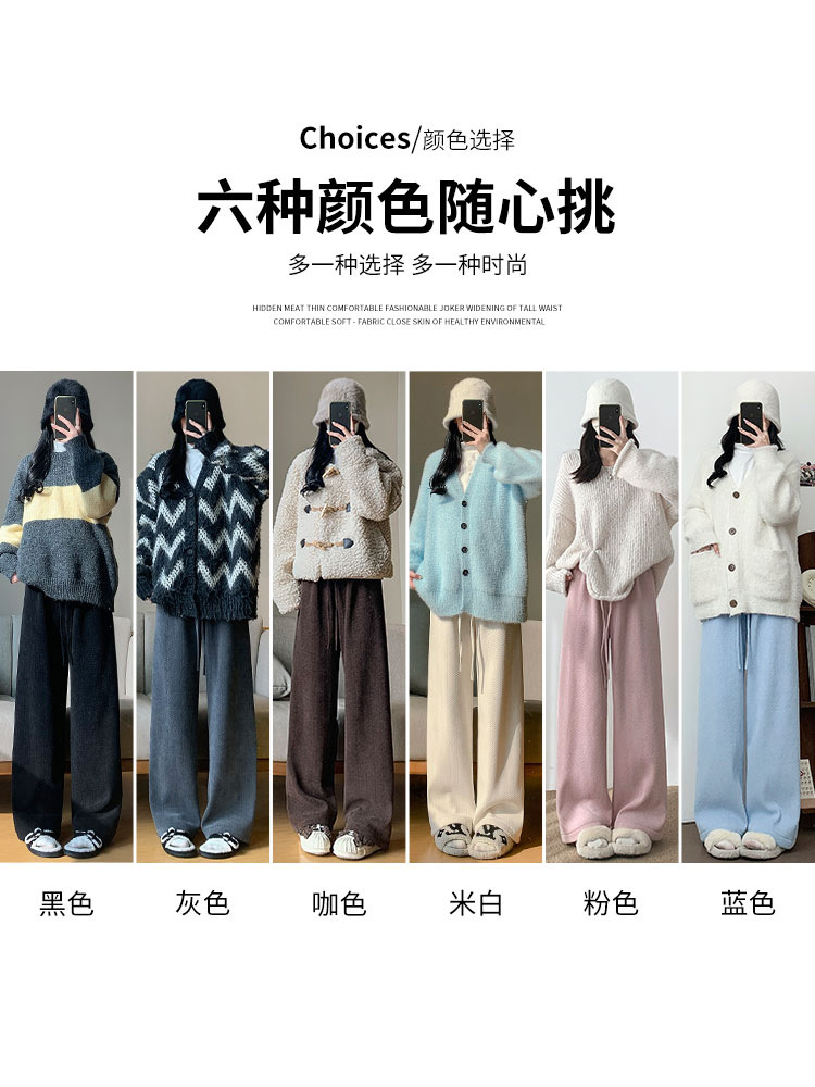 Главная страница > Серая елка широкие брюки женские весенние и осенние с высокой талией