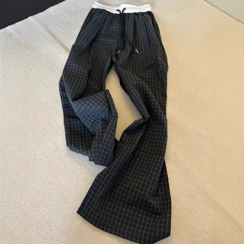 Главная страница > [Специально для Юго-Восточной Азии] Ретро темно-синие брюки в клетку повседневные женские весенние новые свободные прямые брюки широкие брюки