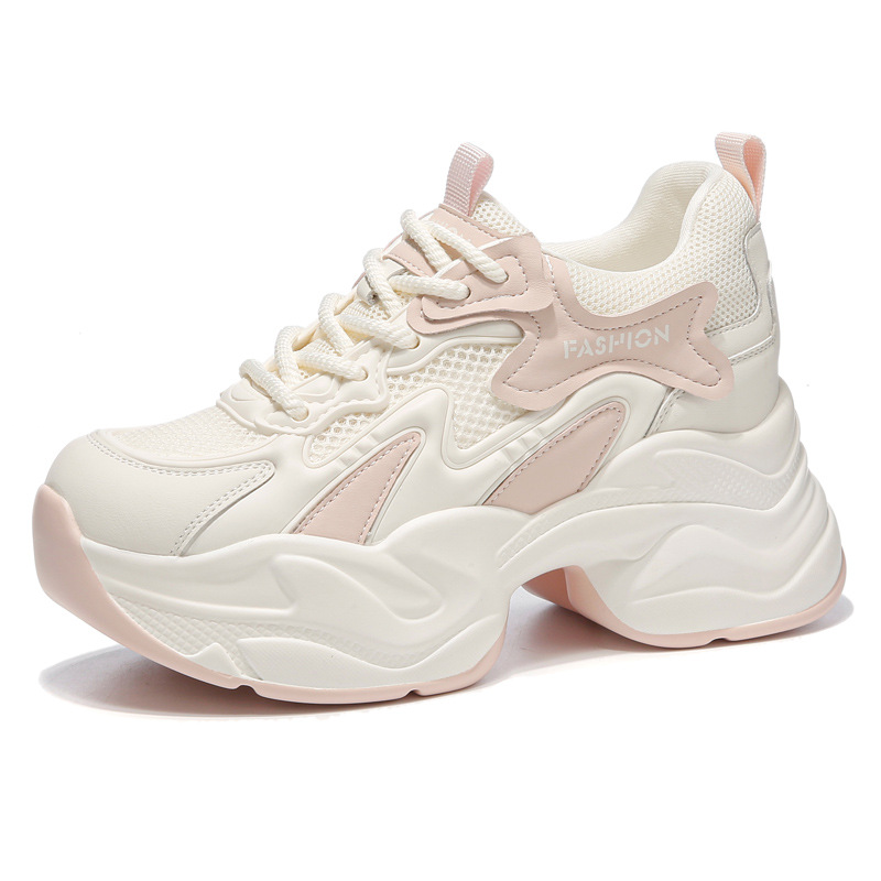 Женские сетчатые туфли для папы, лето 2025, новый стиль, маленькие женские туфли с внутренним увеличением, повседневные туфли на танкетке и платформе, сетчатые туфли на толстой подошве