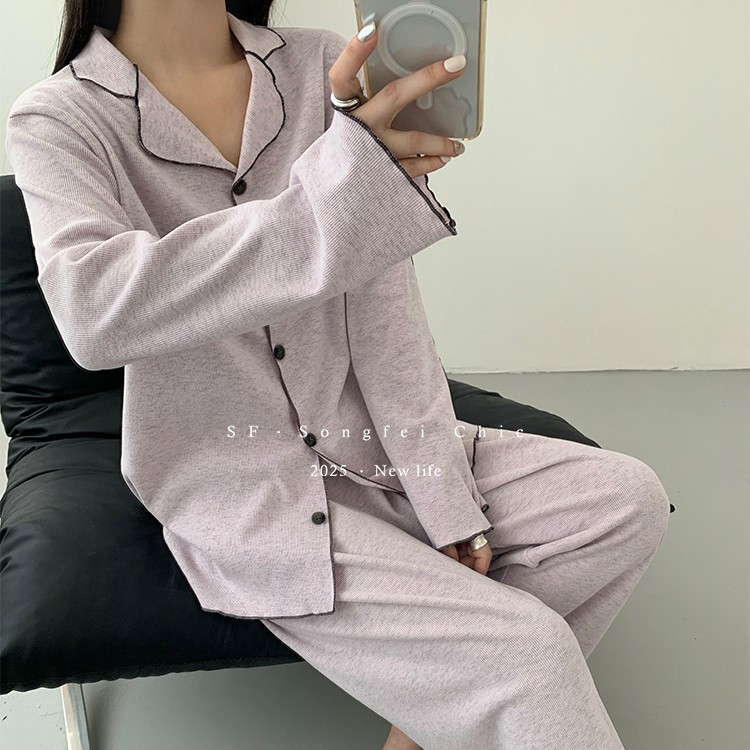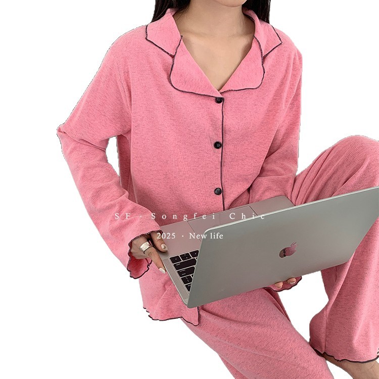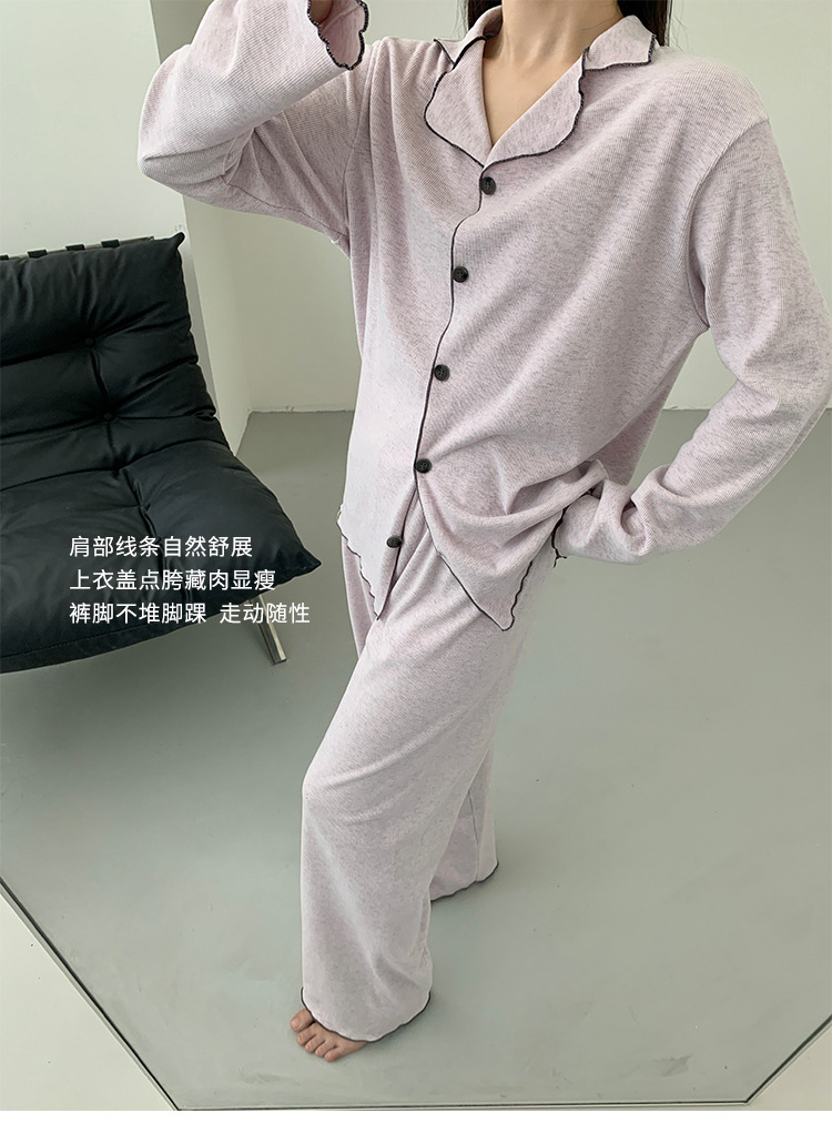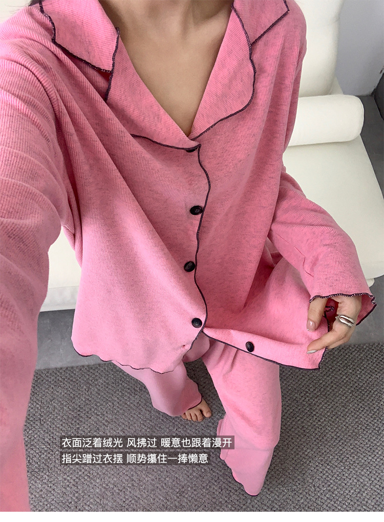 Главная страница > 3733 Домашняя одежда контрастного цвета с резьбой, женский костюм, осенне-зимний новый эластичный дышащий пижамный комплект из двух предметов с лацканами и деревянными ушками