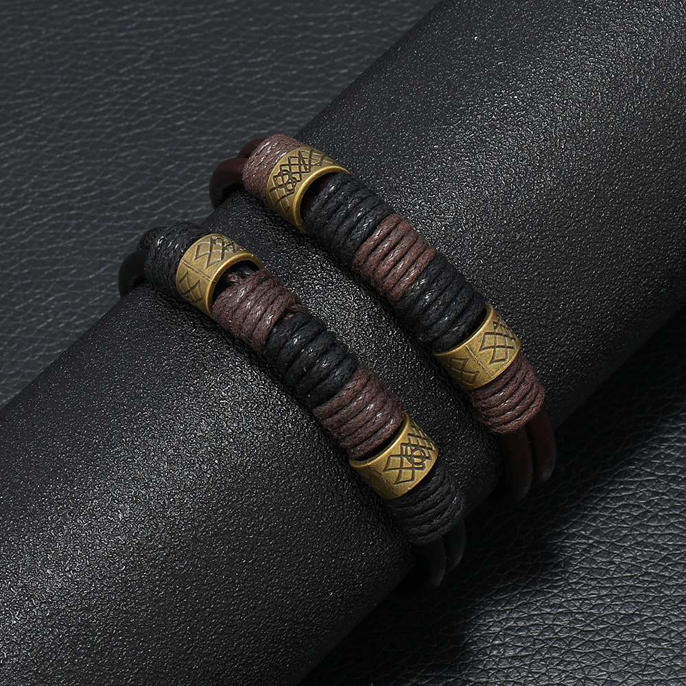 Европейский и американский ретро-многослойный Плетеный Браслет из черной воловьей кожи, популярные простые мужские аксессуары, производители поставляют