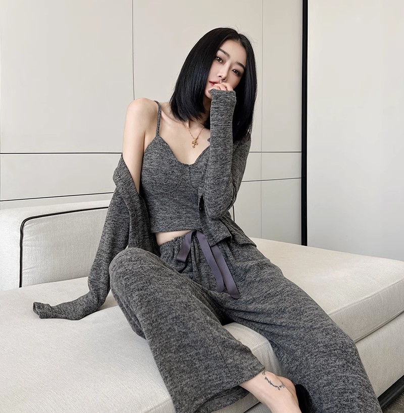 Главная страница > Весна и осень-тройка пижамы женская простая Золотая Бархатная ленивая стильная повседневная верхняя одежда шлифовальная Трикотажная хлопковая домашняя одежда