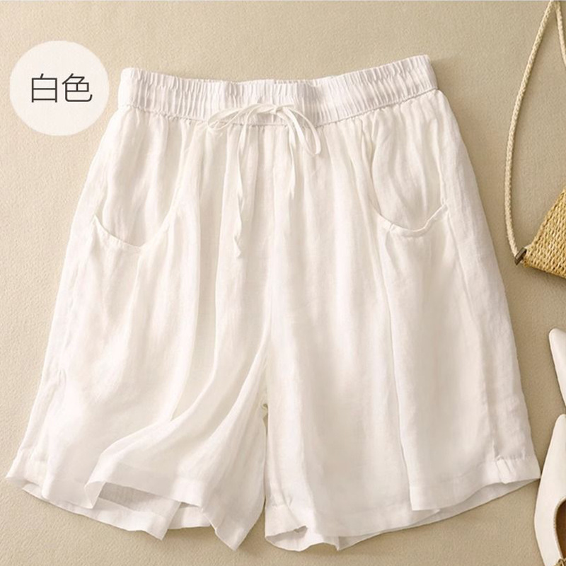 Новые летние повседневные широкие шорты, крутые хлопковые и льняные тонкие однотонные брюки с карманами на шнурке и тонкими однотонными брюками для женщин