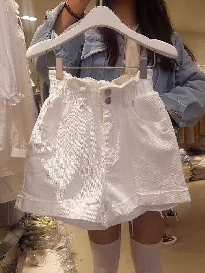 Главная страница > Джинсовые шорты для женщин, лето 2025, новый корейский стиль, высокая талия, большой размер, толстая ММ, эластичная талия, утягивающие шорты трапециевидной формы с широкими штанинами