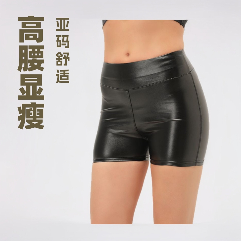 811 # Черные женские шорты с высокой талией, эластичные, облегающие повседневные брюки, шорты-ботфорты из искусственной кожи, большие размеры, удлиняющие ноги, высокая эластичность, стройнящие.