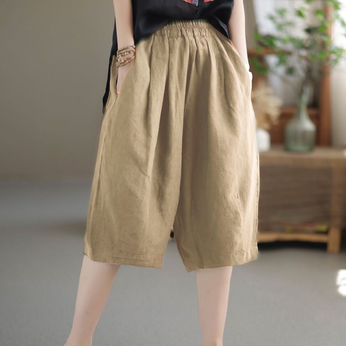 Главная страница > Брюки с пятью точками в стиле 575, художественные широкие шорты из хлопка и льна, женские летние новые тонкие полупрямые брюки с высокой талией, свободный крой
