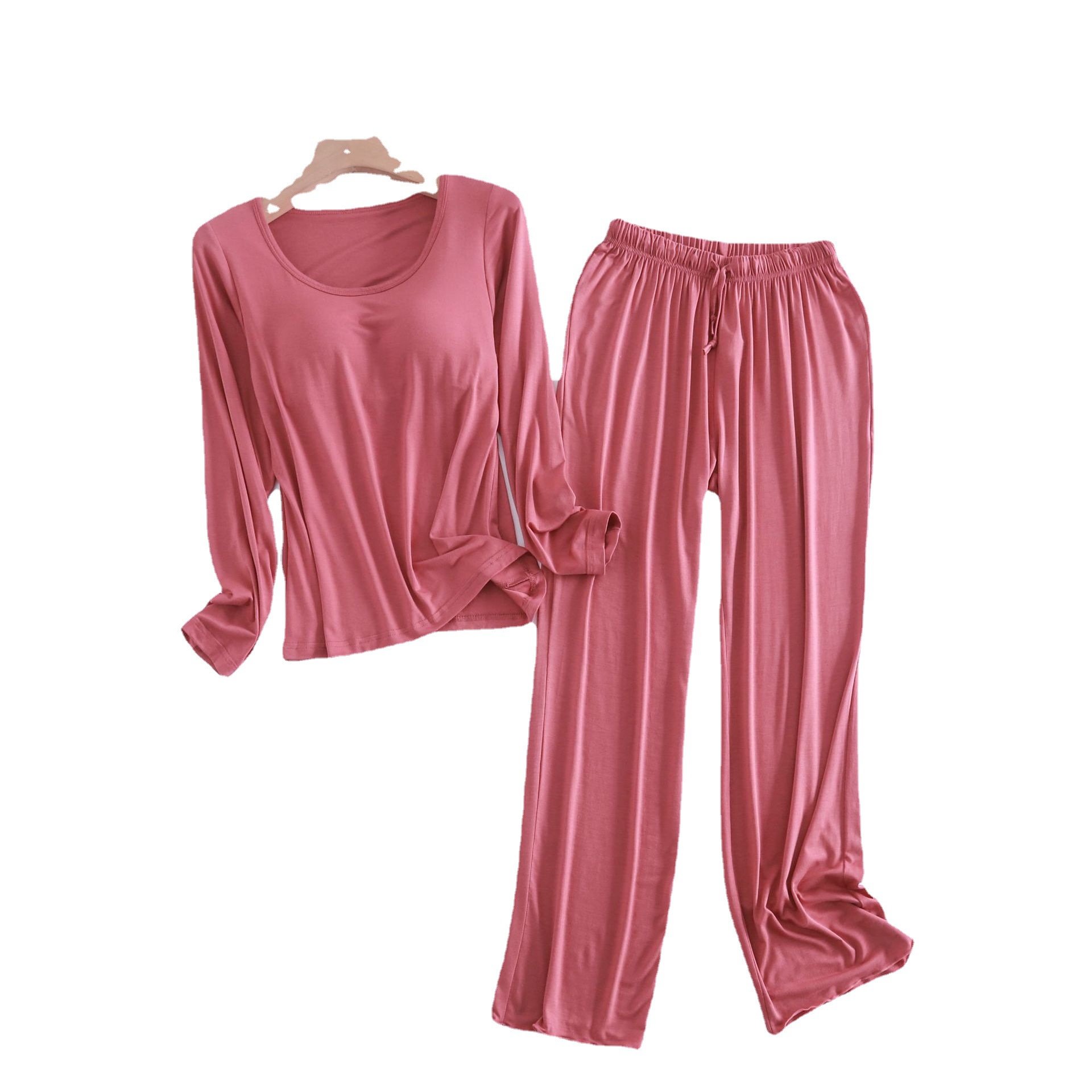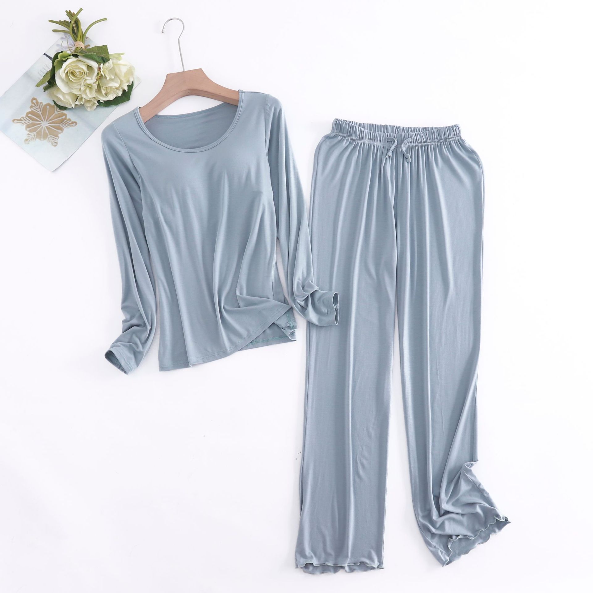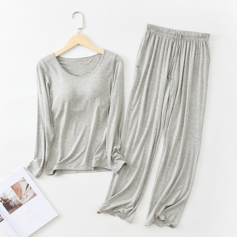 Главная страница > Костюм из модала с длинными рукавами, женские брюки с длинными рукавами и оборками на груди, домашняя одежда из двух предметов, свободная Пижама