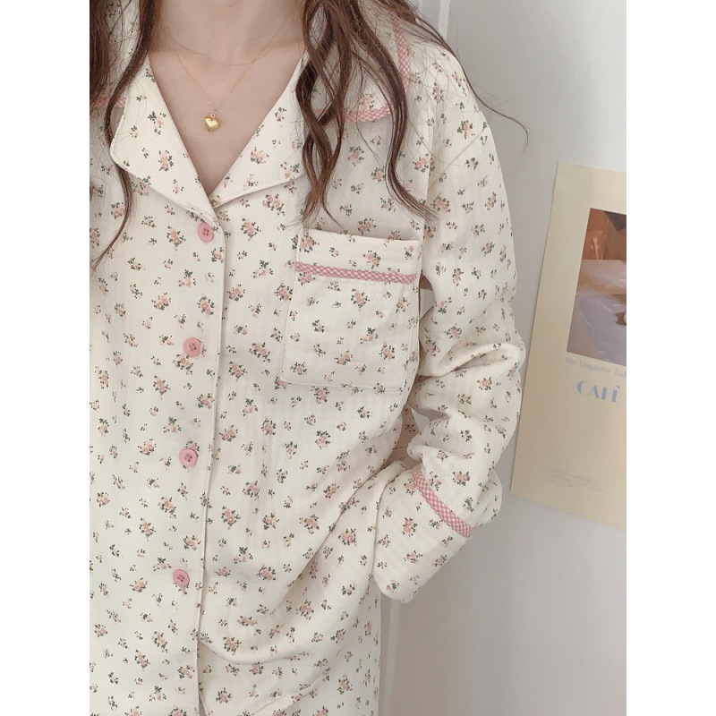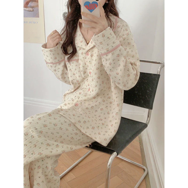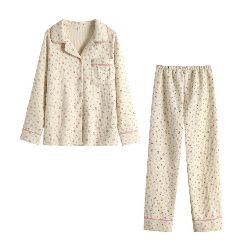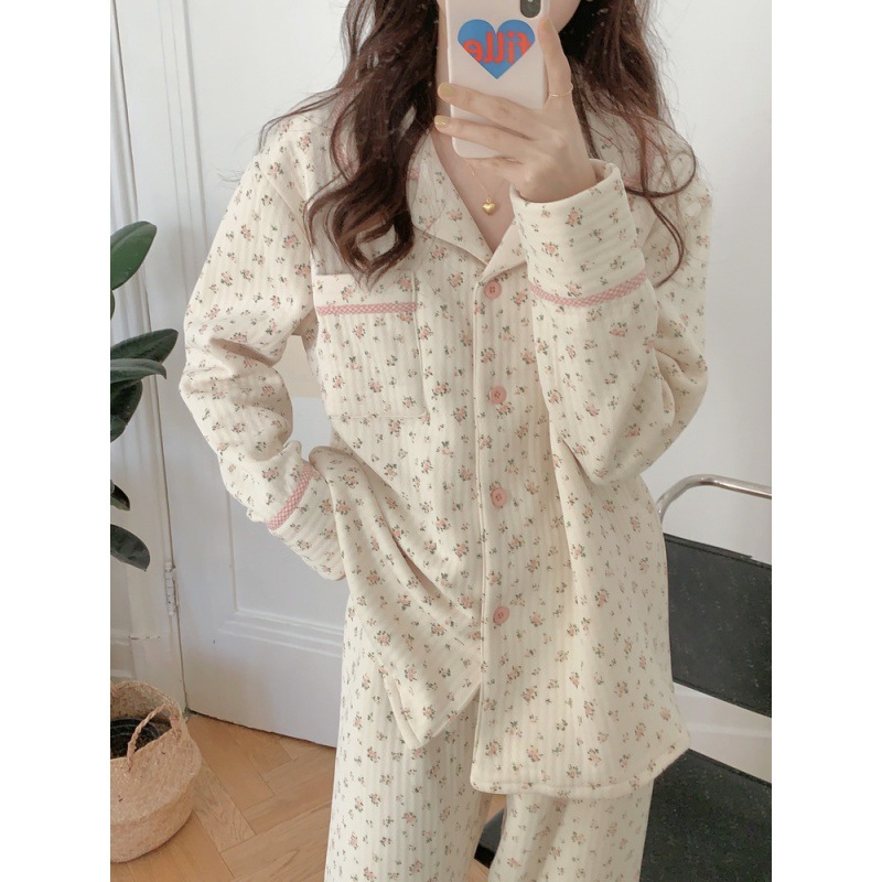 Главная страница > Трансграничная Внешняя торговля утолщенные пижамы дамы с длинным рукавом Цветочные теплый воздух Хлопок Домашняя одежда текстура костюм