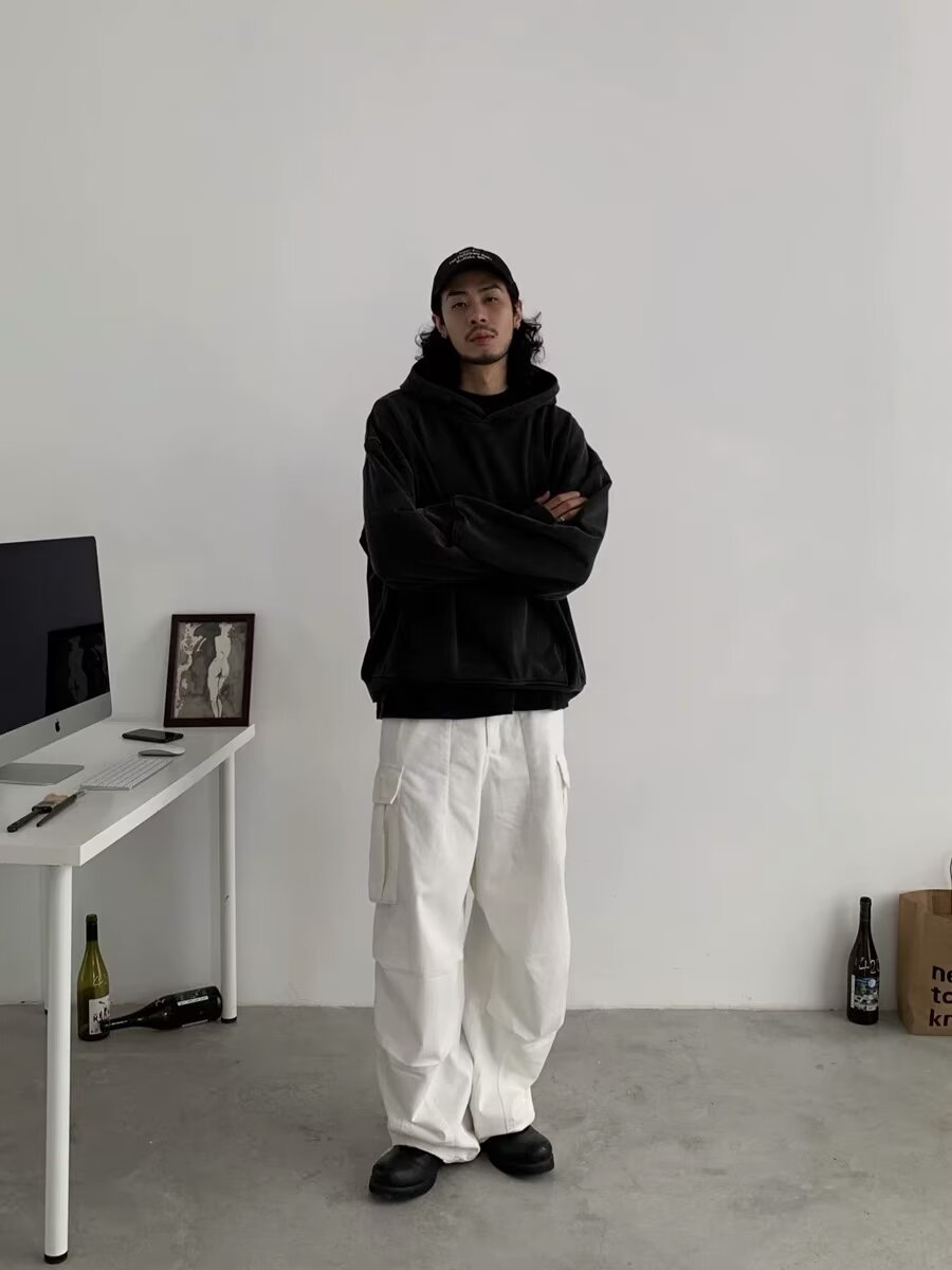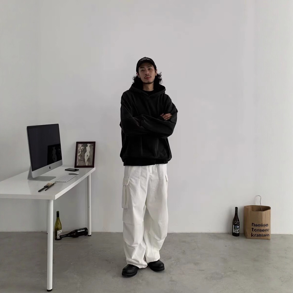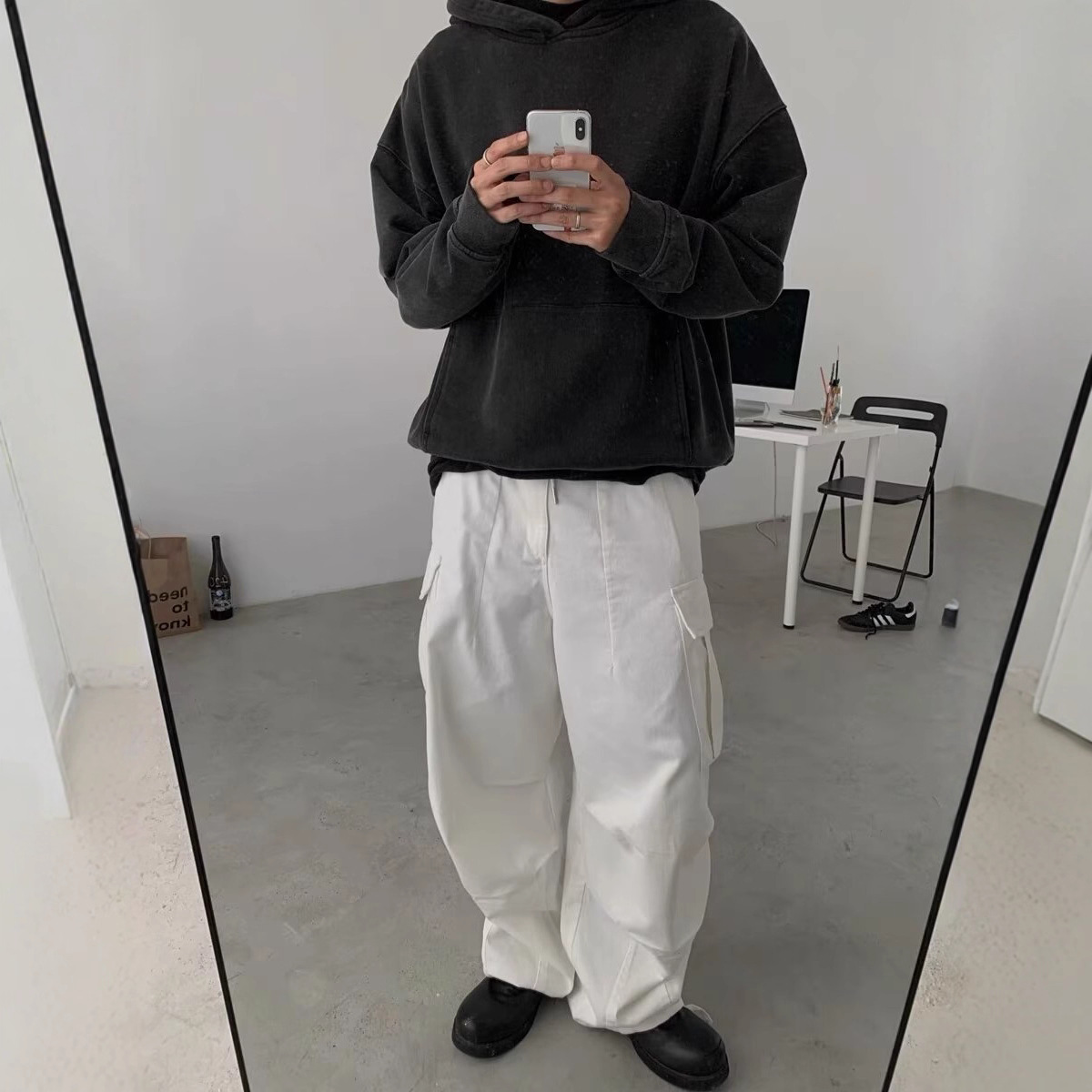 Главная страница > Свободные повседневные брюки с широкими штанинами в американском ретро-стиле на весну и лето, комбинезон с большими карманами, мужские отстегивающие брюки со шваброй