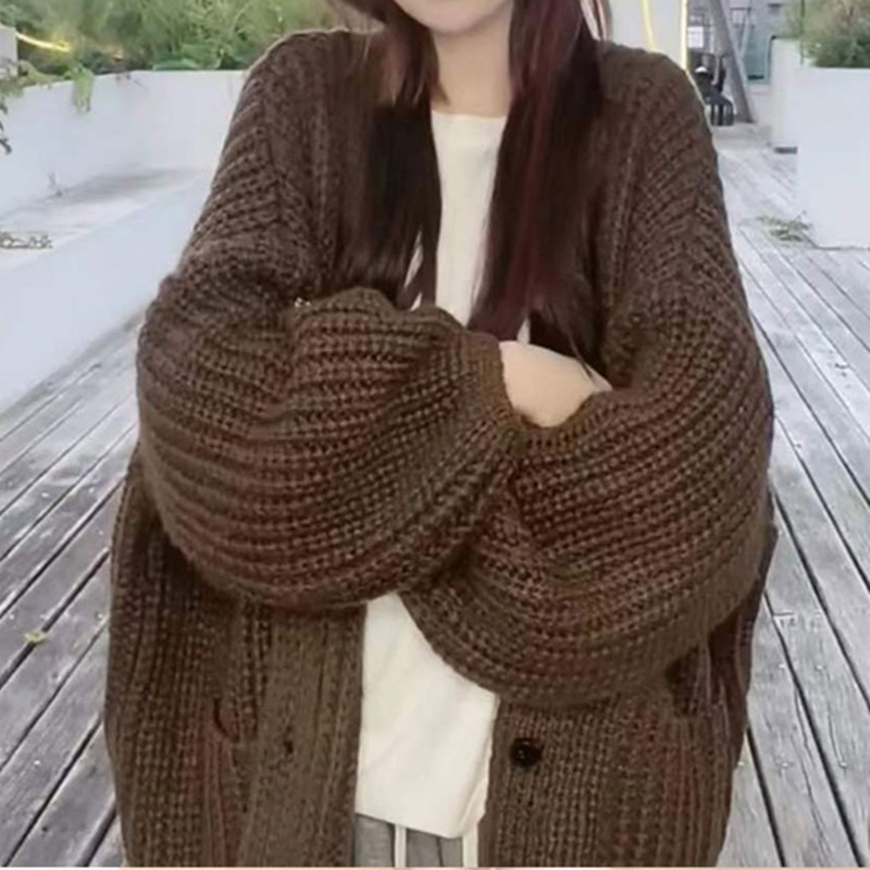 Главная страница > Внешняя торговля Мори шерстяной свитер кардиган женский осенний и зимний большой выпуск свободного корейского ленивого ветра трикотажный топ
