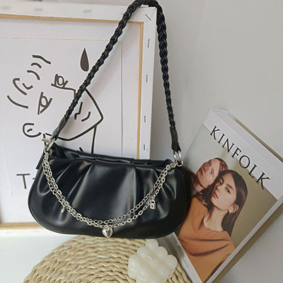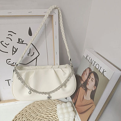 Главная страница > Сумка Cloud подмышками, плиссированная мягкая кожаная сумка на плечо, летняя свежая женская тканая сумка через плечо с цепочкой, универсальная