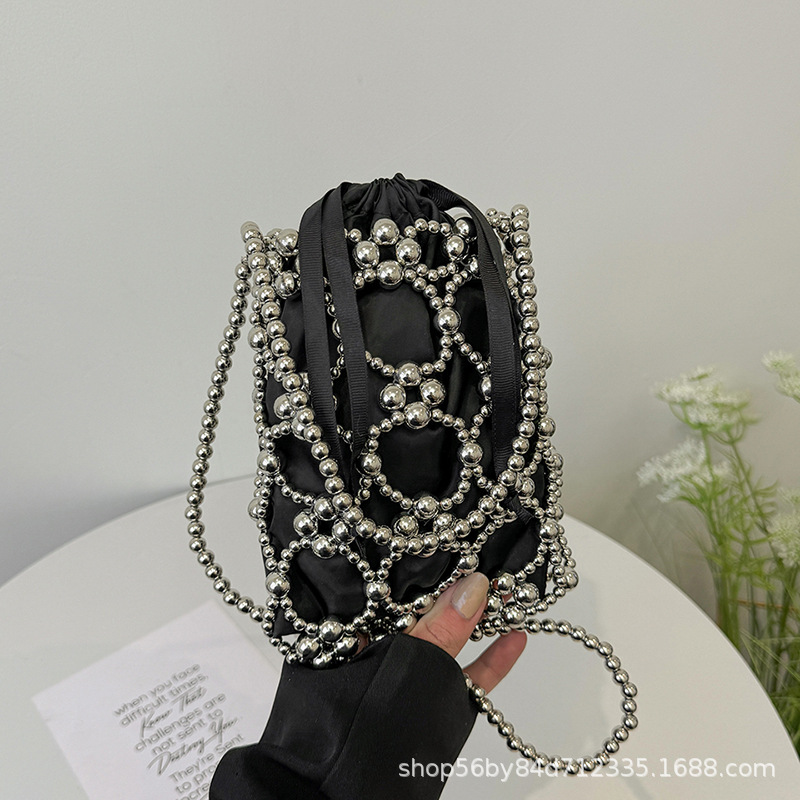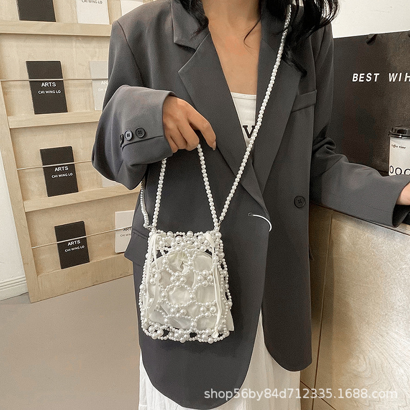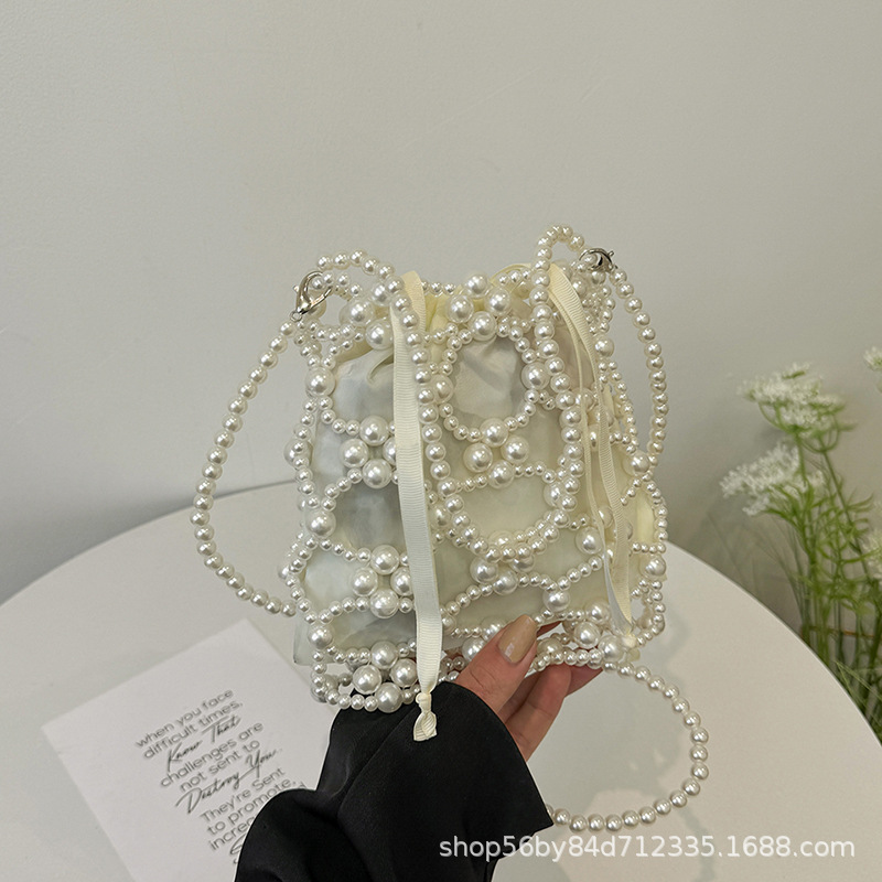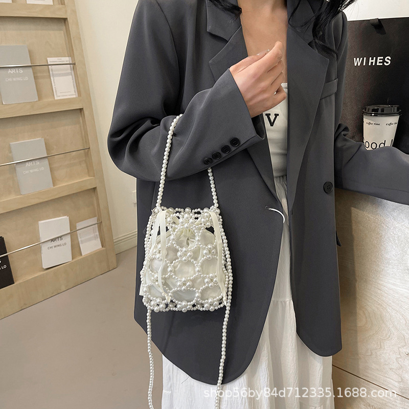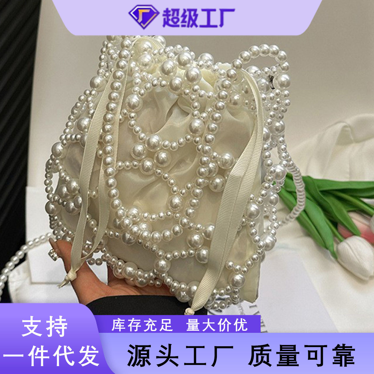 Главная страница > Уникальная сумка ручной работы из жемчуга, винтажный стиль «ведро», нишевая плетеная сумка, сумка с полыми бусинами, новая модель весна 2025, узор «ромб».