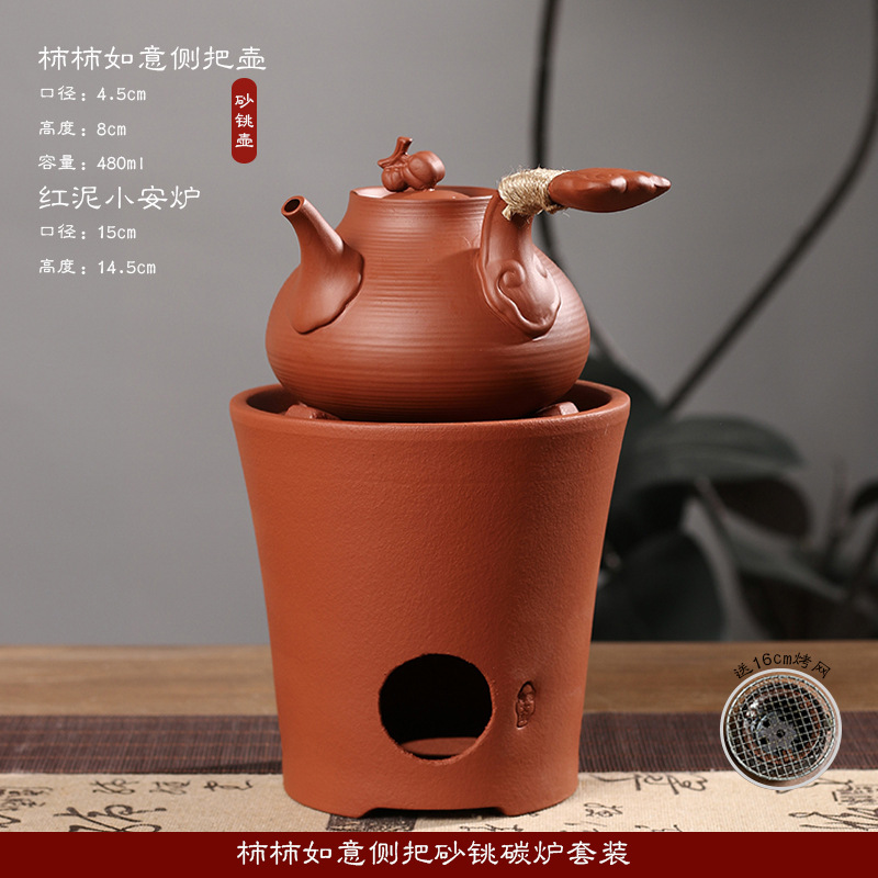 Главная страница > 【Taochao Cultural and Creative】Маленький чайный сервиз Чаошань с узором хурмы, глиняный чайник с боковой ручкой для кипячения воды и чая.