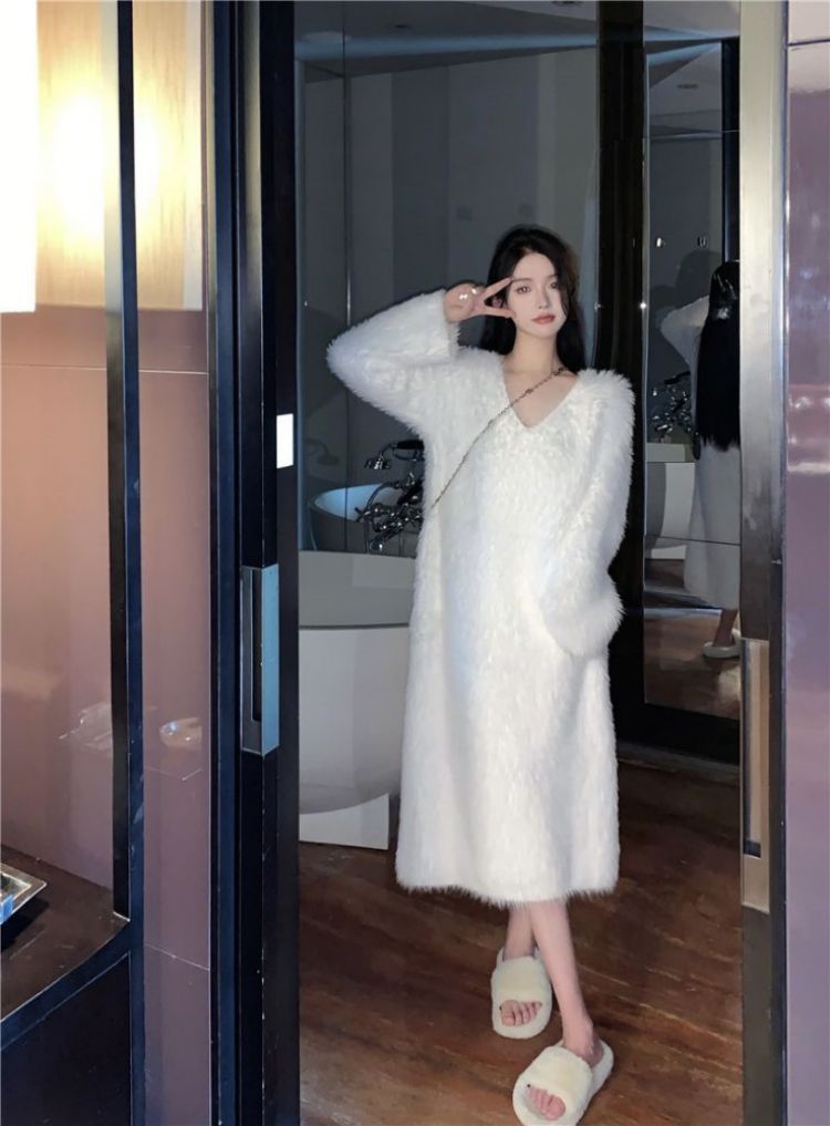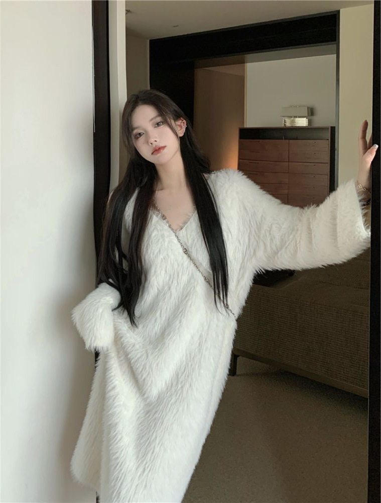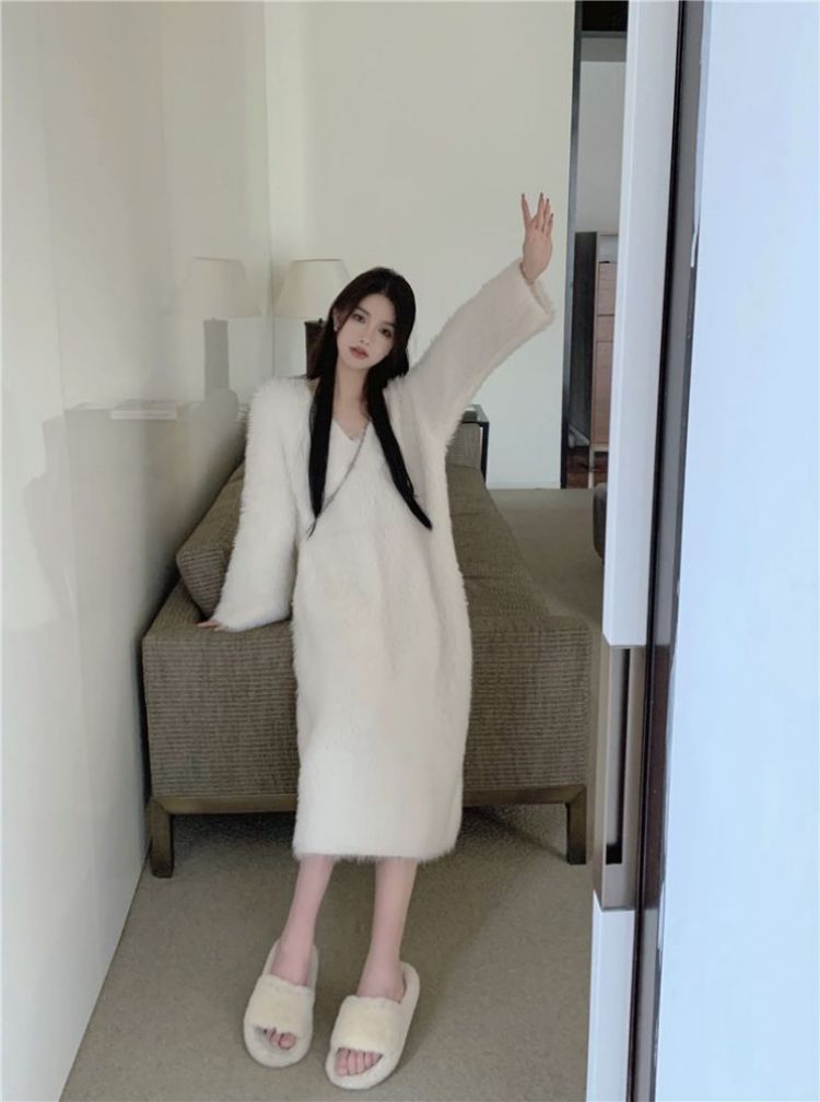 Главная страница > Белый норковый бархат мохер свитер трикотажное платье женский осень зима 2024 новый нежный ветер свободная длинная юбка