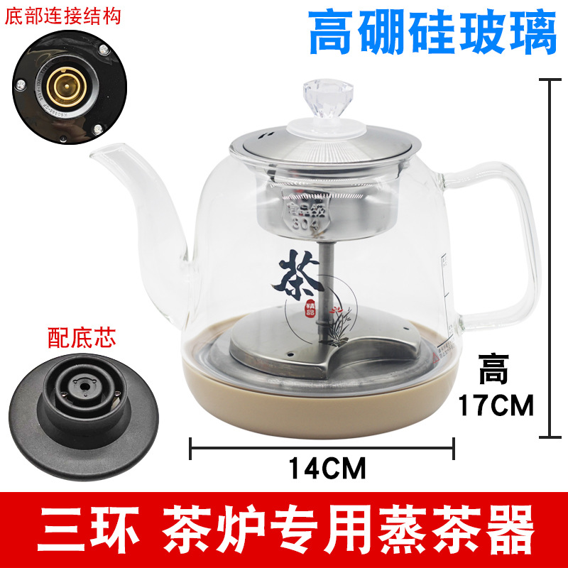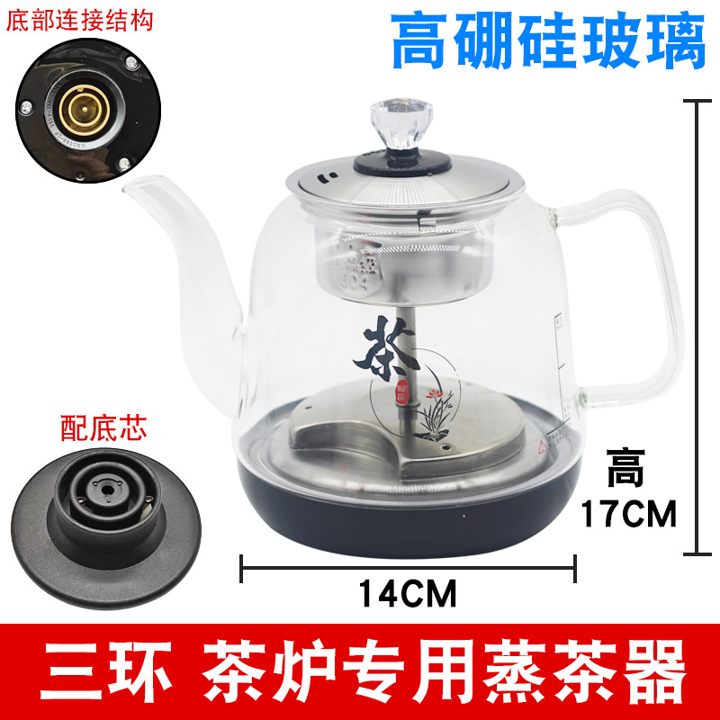 Высокоборосиликатный стеклянный паровой чайник [Золото-три кольца]