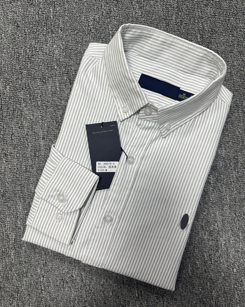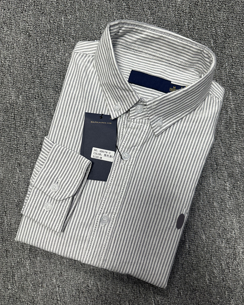 Главная страница > Мужская рубашка с длинными рукавами, весенне-осенняя деловая повседневная полосатая оксфордская мужская молодежная рубашка с логотипом пони, топ
