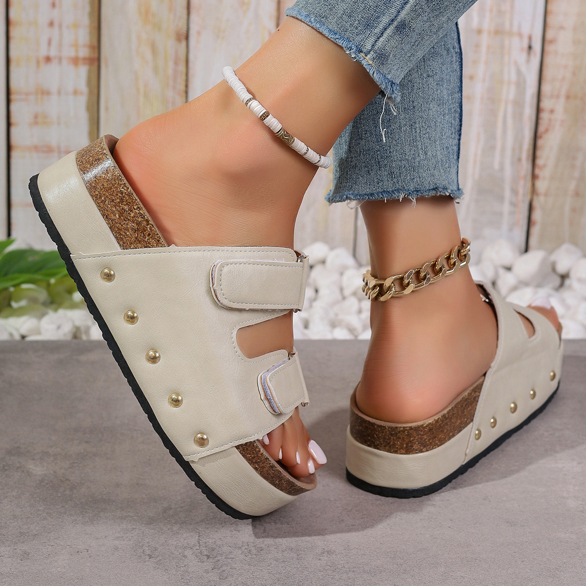 Главная страница > Толстое дно буксировка 2024 летом новый европейский и американский внешняя торговля лента плюс размер липучка заклепка тапочки женщины оптом