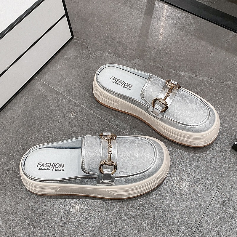 Главная страница > Металлическая пряжка красная мода половинные тапочки женская летняя 2024 новая голова с толстой подошной спортивной повседневной дикой тапочки