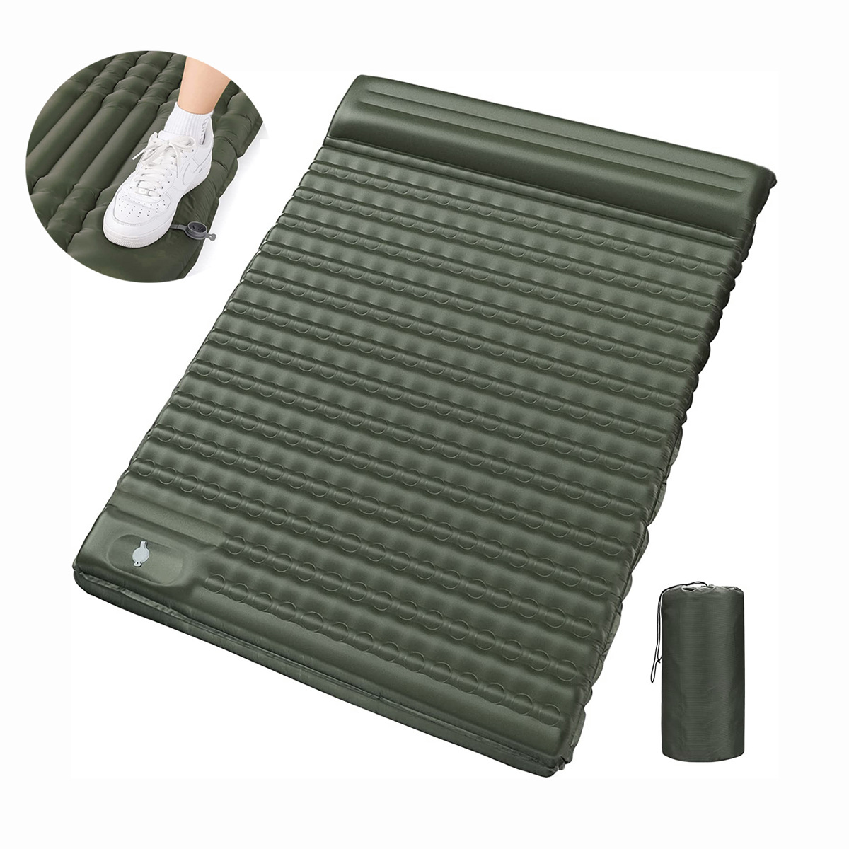 Трансграничный двойной надувной коврик для горячей ноги Удлиненный и расширенный утолщенный спальный коврик для кемпинга Открытый надувной матрас