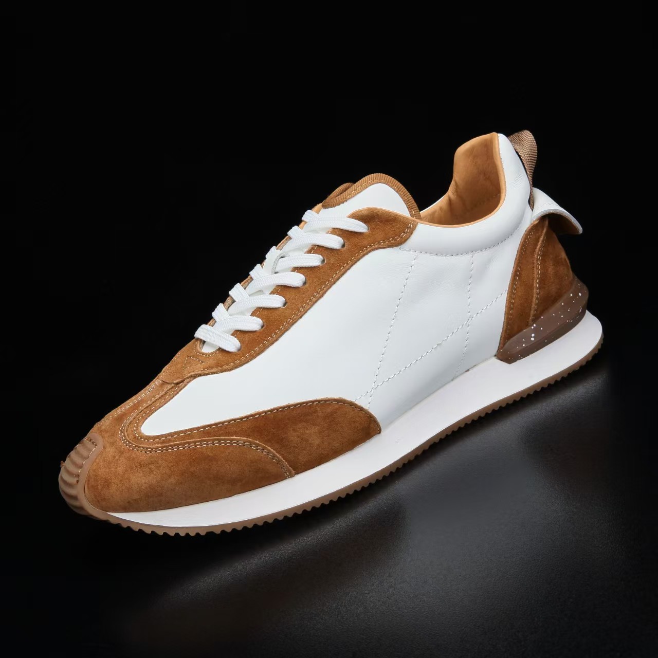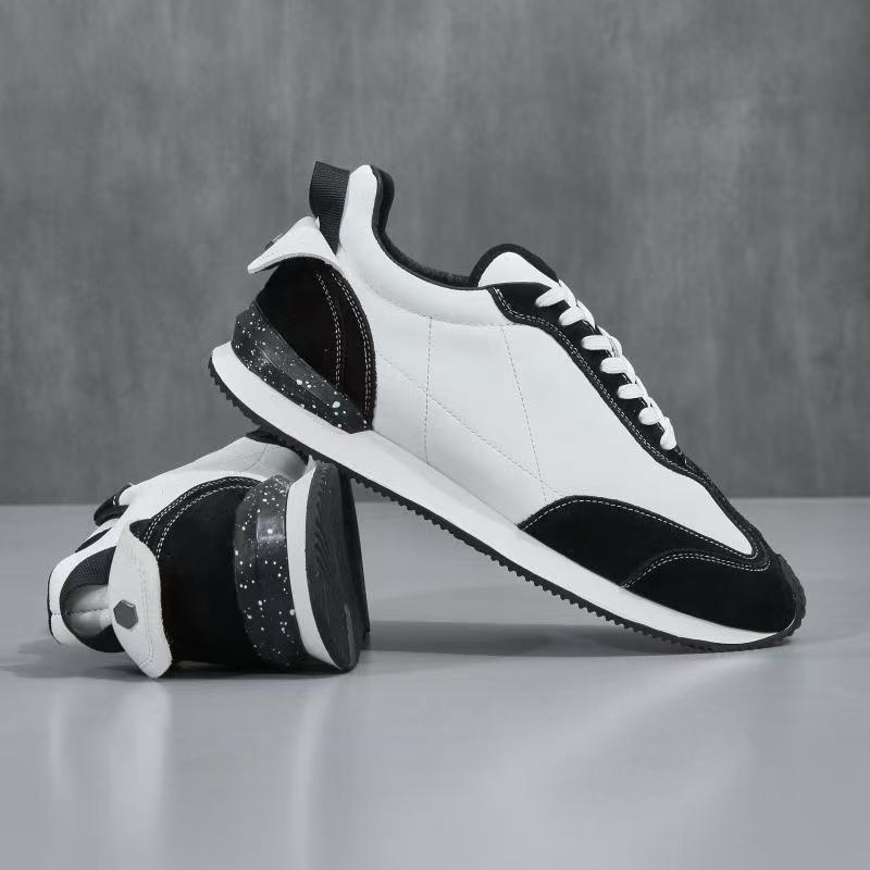 Спортивные повседневные кроссовки в японском стиле, новинка весны 2025 года, модные мужские кроссовки из натуральной кожи, черно-белые с цветными вставками, легкие и с эффектом увеличения роста.