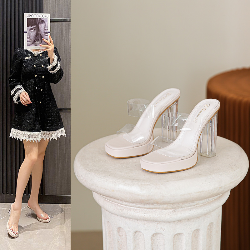 Главная страница > 2023 летние новые стильные тапочки на высоком каблуке водонепроницаемые платформы с кристаллами на толстом каблуке на среднем каблуке маленький размер прозрачные сандалии для женщин