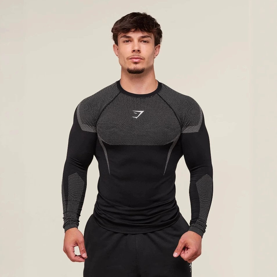 GYMSHARK фитнес-топы мужские трансграничные популярные колготки мужские беговые тренировочные футболки с длинными рукавами Muscle Shark