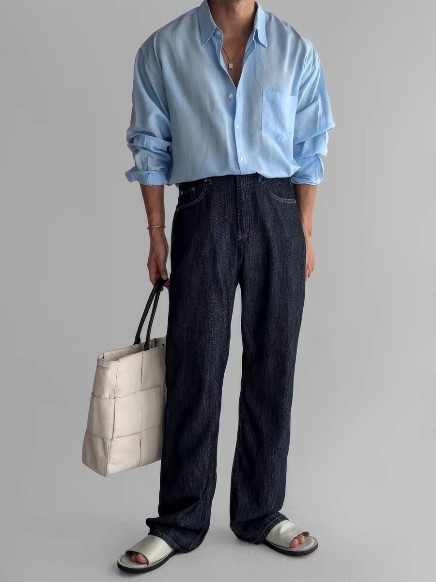 Главная страница > Европейские и американские ретро сплошные рубашки для мужчин высокого уровня расслабленного солнцезащитного крема с длинными рукавами