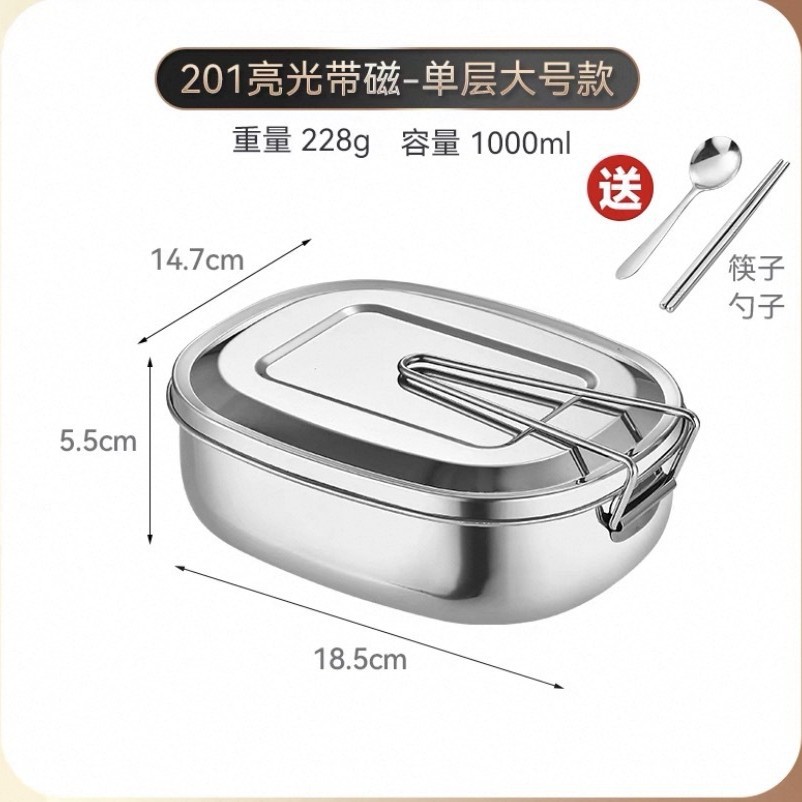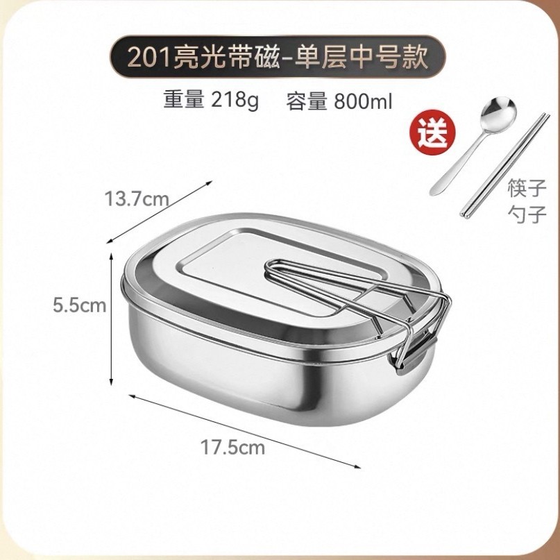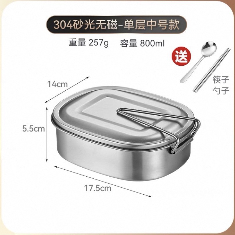 Однослойный ланч-бокс 304 [среднего размера] поставляется с ложкой и палочками для еды.