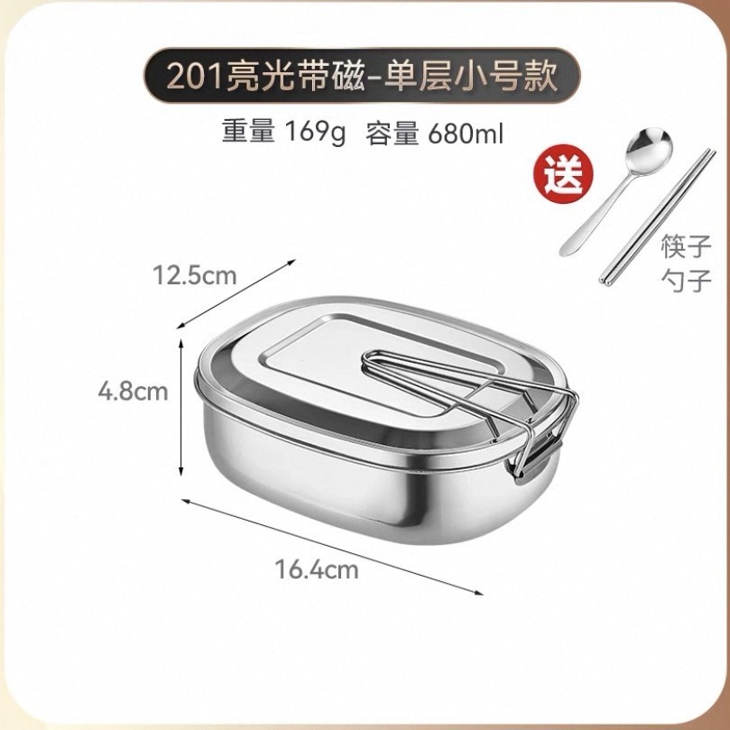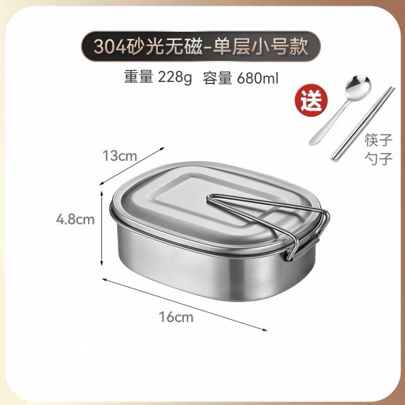Однослойный ланч-бокс 304 [маленький размер] поставляется с ложкой и палочками для еды.