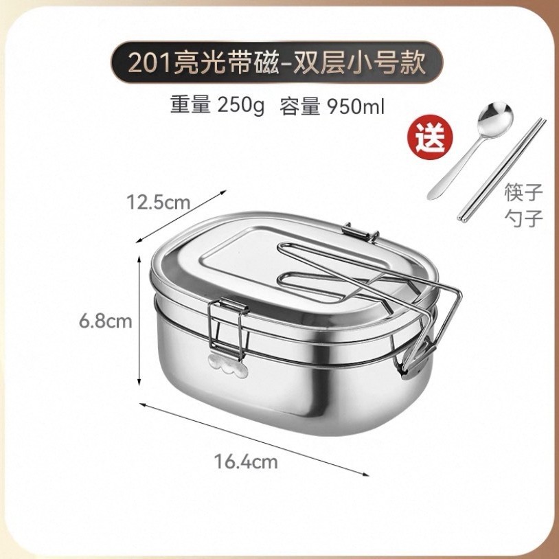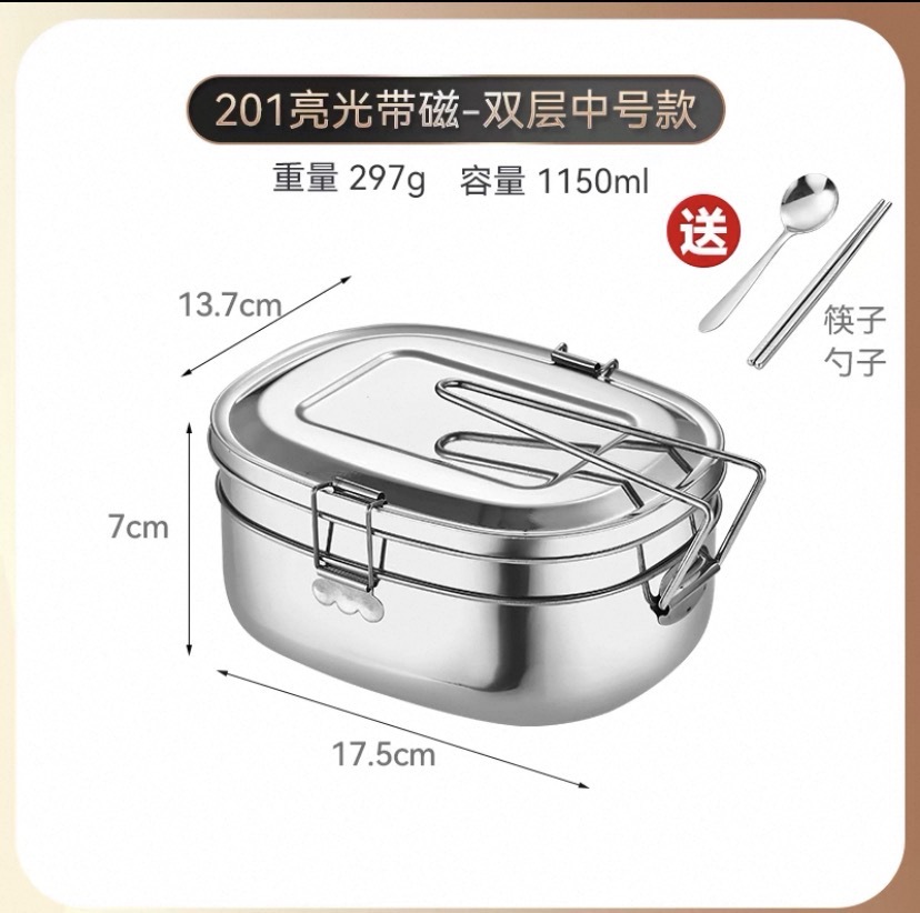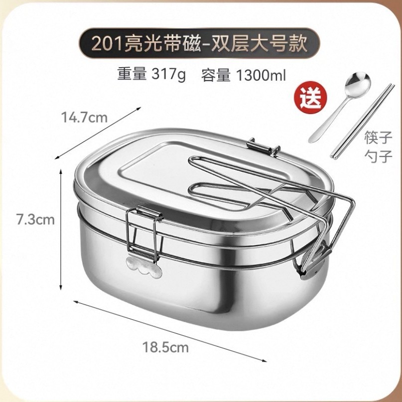 Двухслойный ланч-бокс 201 [среднего размера] поставляется с ложками и палочками для еды.